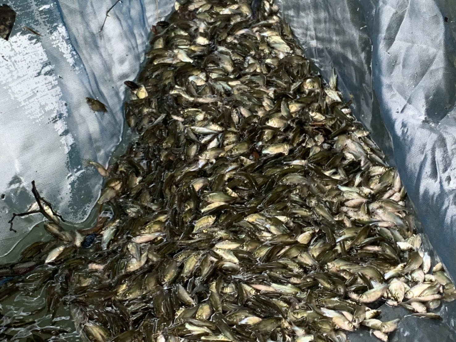 วันนี้ 26 พฤษภาคม 64 นายวิทยา โกษาผล ประมงอำเภอเขื่องใน ร่วมกับ เจ้าหน้าที่ฟาร์มตัวอย่างฯ บ้านยางน้อย อ.เขื่องใน จ.อุบลราชธานี ดำเนินการเก็บรวบรวมผลผลิตปลาตะเพียนที่เพาะพันธุ์เมื่อวันที่ 31 มีนาคม 64 อายุเพียง 56 วัน ลูกปลามีขนาดโต 5-7 เซนติเมตร