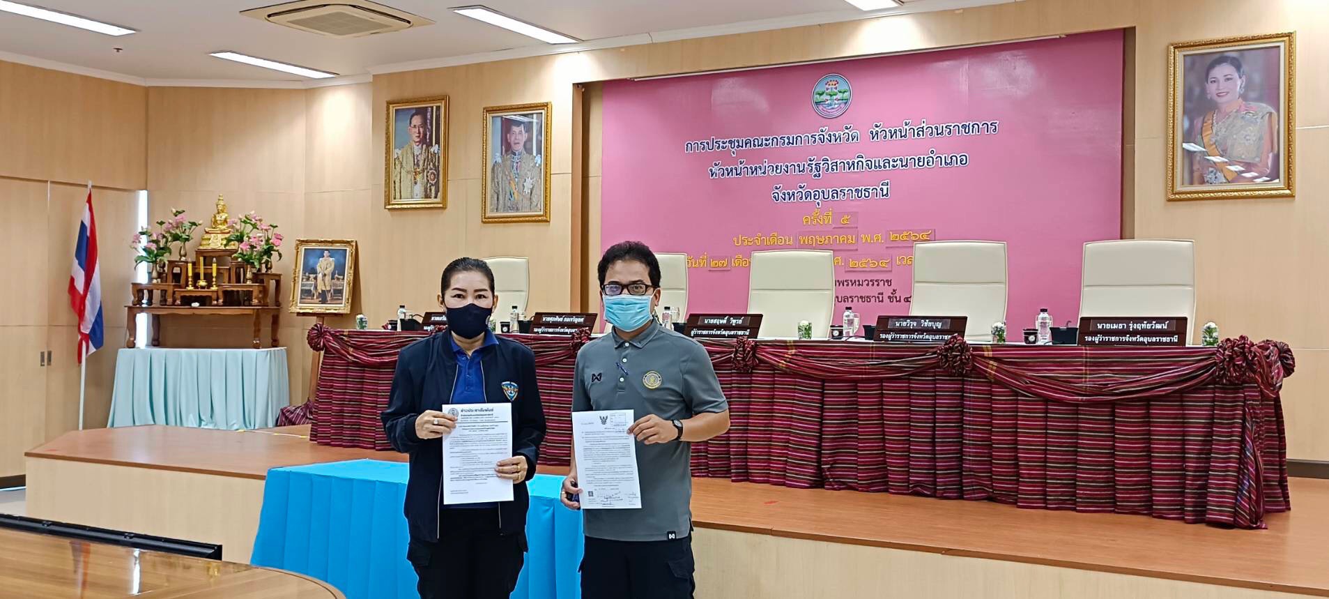 นางอัจฉราภรณ์  อมรสิน เจ้าพนักงานประมงชำนาญงาน พร้อมด้วยนายสุวิทย์  พัชนี นักวิชาการประมง  แจกเอกสารข่าวประชาสัมพันธ์สำนักงานประมงจังหวัดอุบลราชธานี มาตรการคุ้มครองสัตว์น้ำจืดมีไข่ วางไข่ และเลี้ยงตัวอ่อน ประจำปี 2564 จังหวัดอุบลราชธานี ขอความร่วมมืองดจับสัตว์น้ำในฤดูสัตว์น้ำจืดมีไข่ วันที่ 1 มิถุนายน – 31 สิงหาคม 2564 ในการประชุมคณะกรมการจังหวัดอุบลราชธานี ประจำเดือนพฤษภาคม 2564  ณ ห้องประชุมพรมวรราช ชั้น 4 ศาลากลางจังหวัดอุบลราชธานี