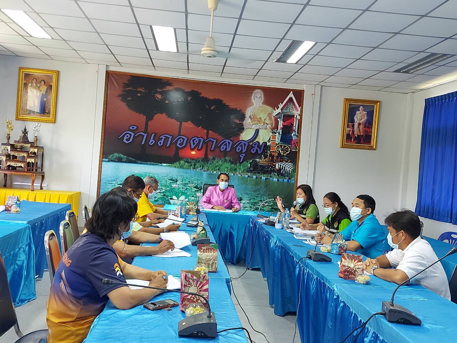28? พ.ค.64? เวลา?13.30? น.นาย?บัญญัติ?ไฝ่จิต?ประมง?อำเภอ?พิบูล?ฯ?ร่วม?ประชุม?คณะกรรมการ?บริหาร?โครงการ?ยกระดับ?แปลง?ใหญ่?ด?้วยเกษตร?สมัยใหม่?และ?เชื่อมโยง?ตลาด?ระดับ?อำเภอ?ตาล?สุ?ม ณ.ห้องประชุม?ที่ว่าการ?อำเภอ?ตาล?สุ?ม? โดยมีนา?ยอมร? พรมสอน? นายอำเภอ?ตาลสุม? เป็น?ประธาน?การประชุม? พร้อม?นี้ได้แนะนำตัวประมงอำเภอ?พิบูล?ฯรับผิดชอบ?งานประมงอำเภอตาลสุมต่อนายอำ ตาลสุม? คนใหม่