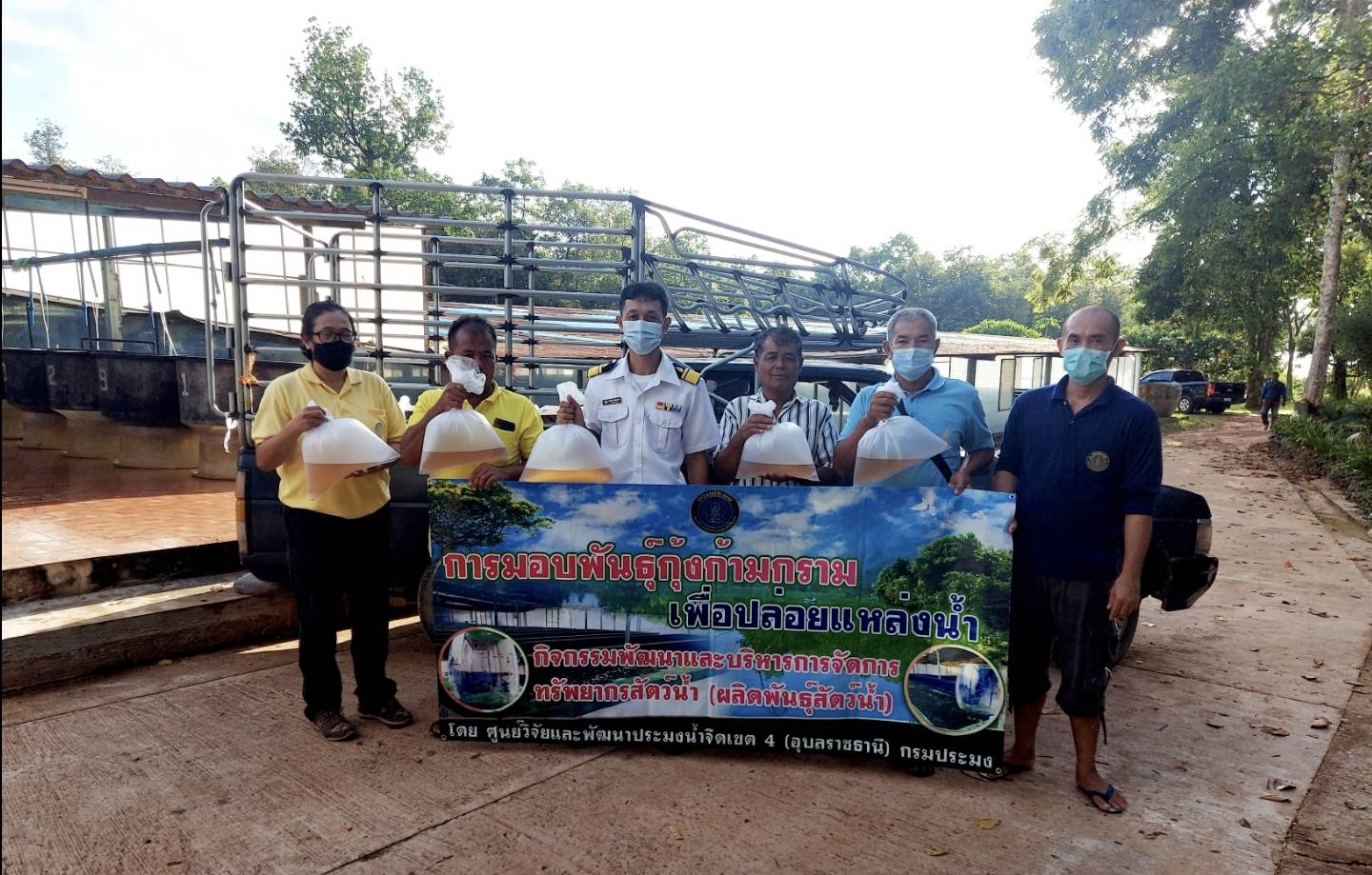 ประมงอำเภอตระการพืชผล ผู้รับผิดชอบงานด้านประมงอำเภอดอนมดแดง ดำเนินงานโครงการปล่อยกุ้งก้ามกรามในพื้นที่ บ้านท่าเมืองหมู่ที่ 1 บ้านท่าเมืองและหมู่ที่ 9 บ้านท่าเมืองเหนือ ตำบลท่าเมือง อำเภอดอนมดแดง