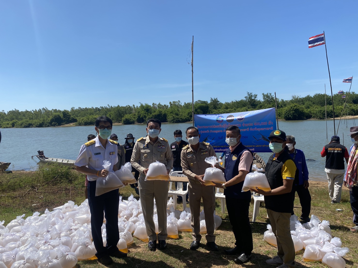 ประมงจังหวัดอุบลราชธานี ผู้อำนวยการศูนย์วิจัยและพัฒนาประมงน้ำจืดอุบลราชธานี ประมงอำเภอเขื่องใน และส่วนราชการในพื้นที่ร่วมกิจกรรมการปล่อยพันธุ์กุ้งก้ามกราม จำนวน 200 ถุง ปล่อย ณ บริเวณบุ่งสระพัง บ้านปากน้ำ หมู่ที่ 3 ตำบลกุดลาด อำเภอเมืองอุบลราชธานี จังหวัดอุบลราชธานี