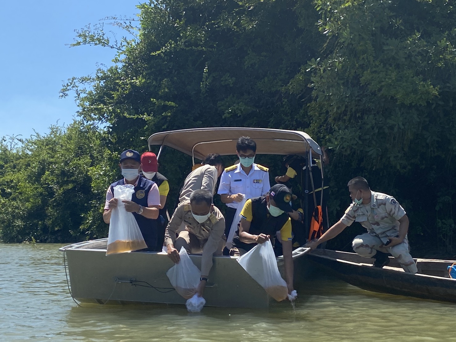 วันที่ 31 พฤษภาคม 2564  เวลา 10.00 น. นายศุภกิตติ์ ใสกระจ่าง ประมงจังหวัดอุบลราชธานี พร้อมด้วย ดร.ธีระชัย พงศ์จรรยากุล ผู้อำนวยการศูนย์วิจัยและพัฒนาประมงน้ำจืดอุบลราชธานี และนายวิทยา โกษาผล ประมงอำเภอเขื่องใน โดยได้รับความอนุเคราะห์จากองค์การบริหารส่วนตำบลกุดลาด กำนันตำบลกุดลาด ผู้ใหญ่บ้าน ชาวประมง และประชาชนในพื้นที่ ในการจัดเตรียมสถานที่ และเรือ เพื่ออำนวยความสะดวกในกิจกรรมการปล่อยพันธุ์กุ้งก้ามกราม จำนวน 200 ถุง ปล่อย ณ บริเวณบุ่งสระพัง บ้านปากน้ำ หมู่ที่ 3 ตำบลกุดลาด อำเภอเมืองอุบลราชธานี จังหวัดอุบลราชธานี และมอบให้กำนันตำบลหนองบ่อ นำไปปล่อยบริเวณเขตอนุรักษ์วังหว้า ม.2 บ้านหนองบ่อ ต.หนองบ่อ อ.เมือง จ.อุบลราชธานี จำนวน 50 ถุง ทั้งนี้ได้รับเกียรติจากนายนคร ศิริปริญญานันท์ นายอำเภอเมืองอุบลราชธานี มอบพันธุ์กุ้งก้ามกรามในครั้งนี้ และร่วมให้สัมภาษณ์สำนักงานประชาสัมพันธ์จังหวัดอุบลราชธานีและสำนักข่าวช่อง VR CABLE TV เรื่องกำหนดพื้นที่และระยะเวลาฤดูสัตว์น้ำจืดมีไข่ หรือวางไข่ เลี้ยงตัวอ่อนและกำหนดเครื่องมือ วิธีการทำการประมง และเงื่อนไขในการทำการประมง พ.ศ. 2564