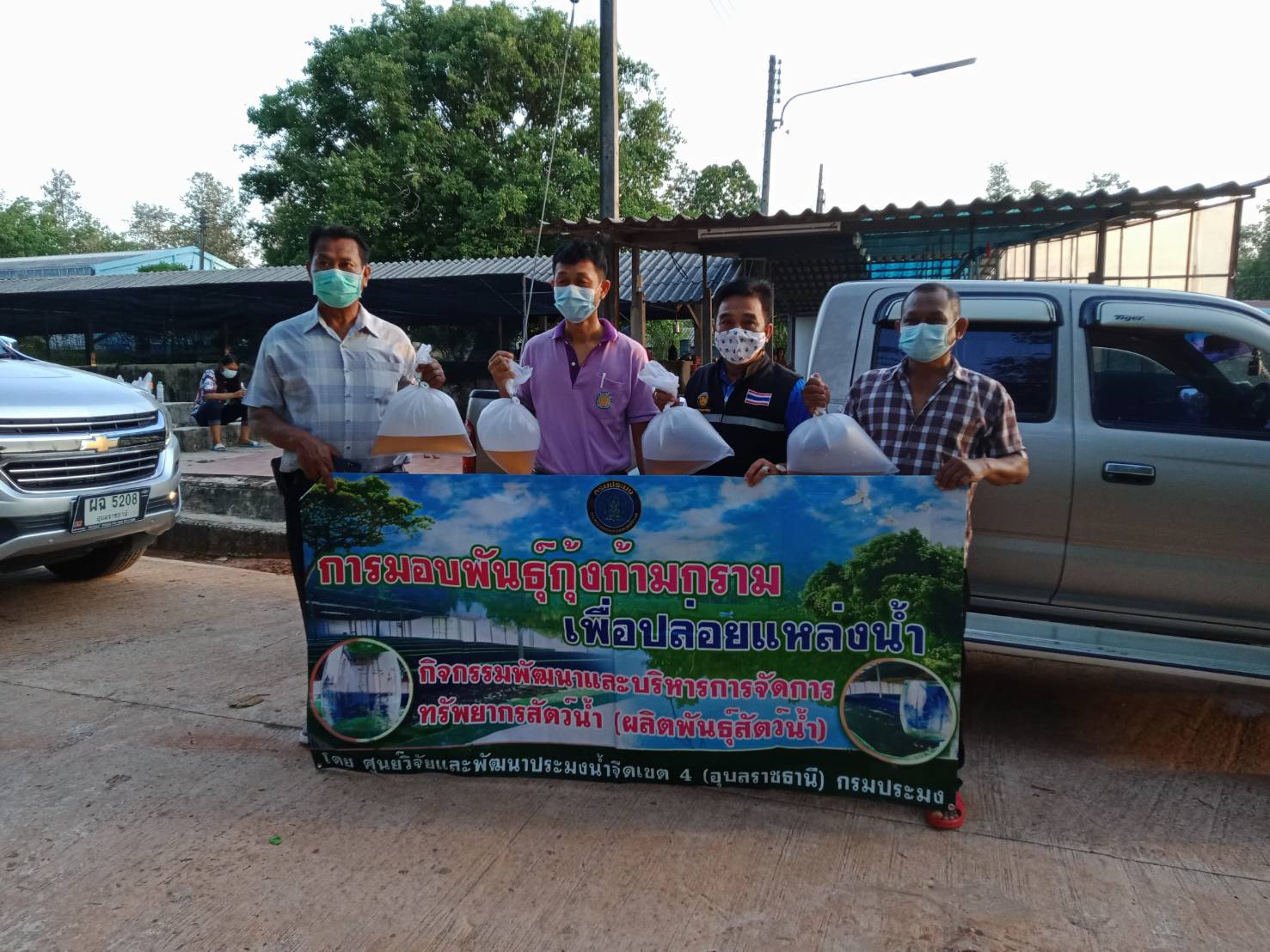 ประมงอำเภอเขื่องใน ดำเนินการรับพันธุ์กุ้งจากหน่วยงานของศูนย์วิจัยและพัฒนาประมงน้ำจืดอุบลราชธานี ในพื้นที่อำเภอเขื่องใน จังหวัดอุบลราชธษนี