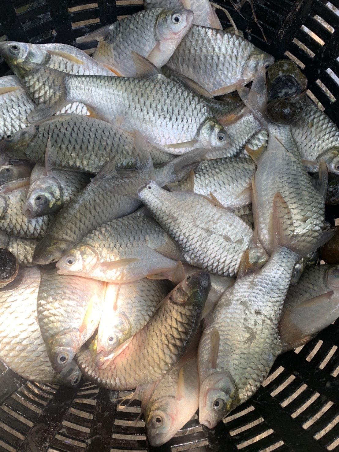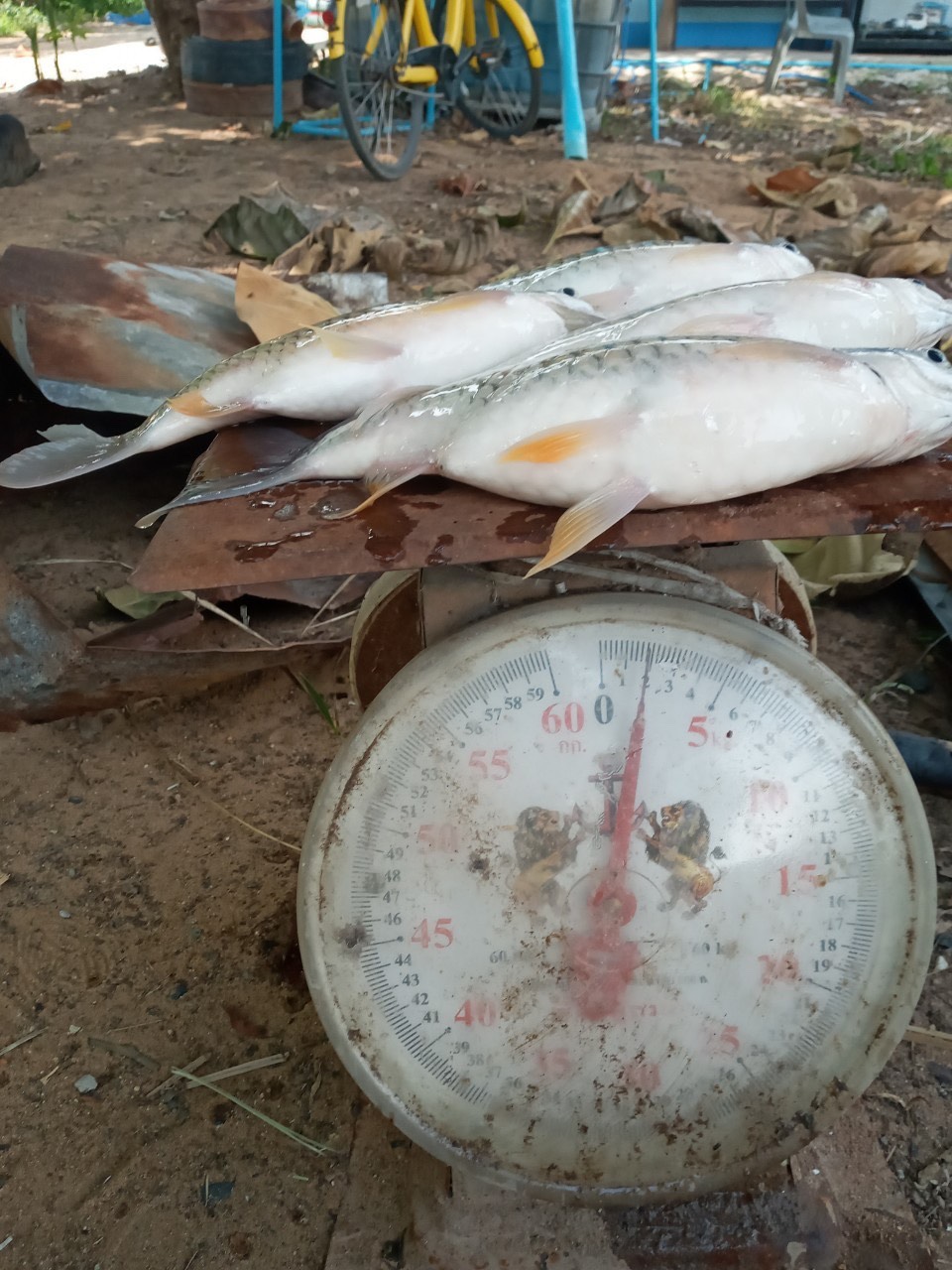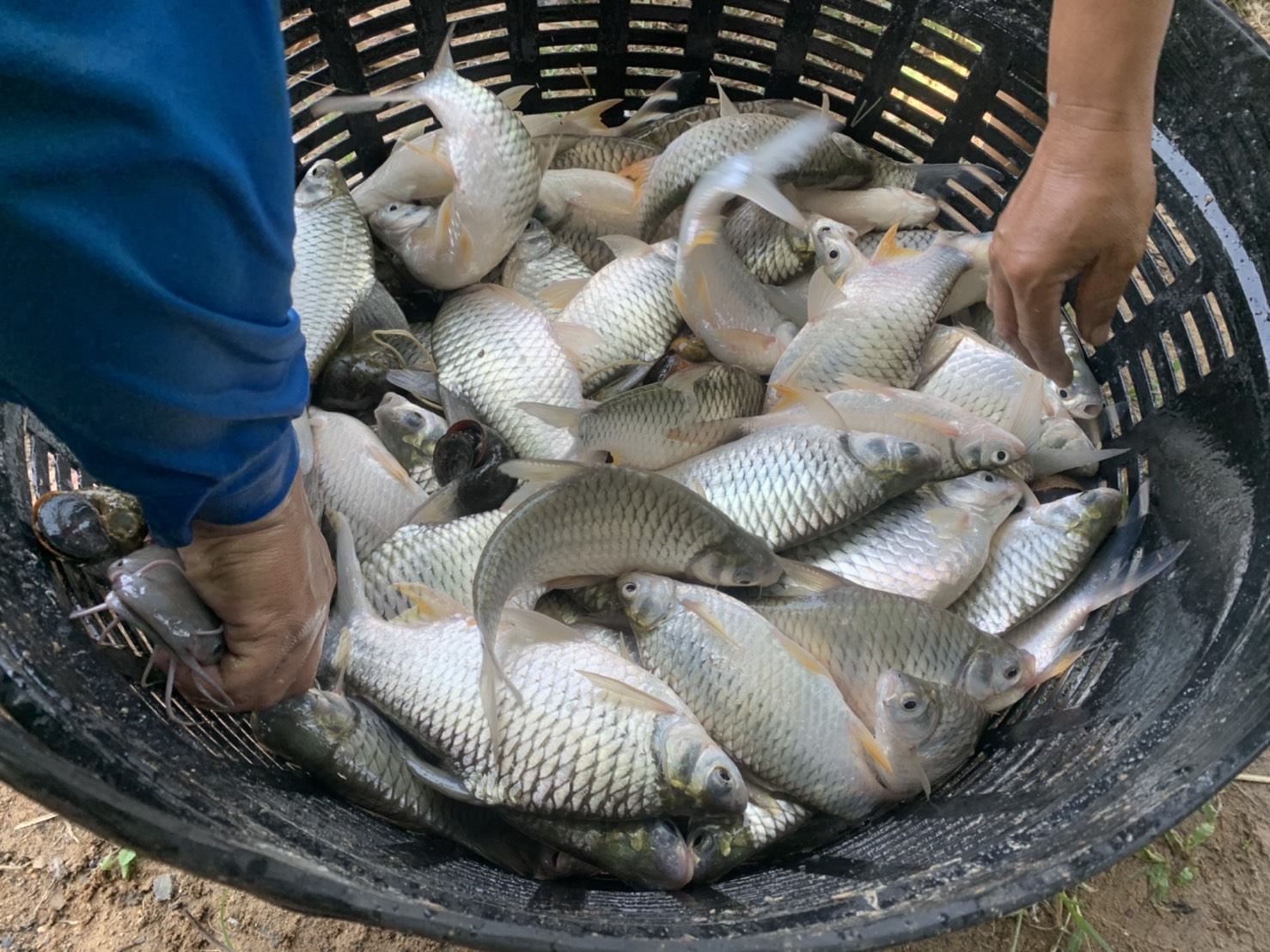 วันที่ 2 มิถุนายน 2564 นายวิทยา โกษาผล ประมงอำเภอเขื่องใน ลงพื้นที่บ้านแดงหม้อ เยี่ยมชมการจำหน่ายผลผลิตปลาตะเพียนขาว ให้แก่กลุ่มแปรรูปปลาส้ม บ้านคำครตา อ.ทรายมูล จ.ยโสธร และได้ถอดองค์ความรู้จากนายอนุวัฒน์ ภูพวก ประมงอาสา ปัจจุบันดำรงค์ตำแหน่งนายกองค์การบริหารส่วนตำบลแดงหม้อ เลี้ยงปลาในบ่อดินขนาด 1 ไร่ ปล่อยพันธุ์ปลา 1,500 ตัว เลี้ยง 6 เดือน ให้อาหารปลาดุก 20 กระสอบ ได้ผลผลิต 310 กิโลกรัม ปลาเพศผู้น้ำหนักเฉลี่ย 5 ตัวต่อกิโลกรัม ปลาเพศเมียน้ำหนักเฉลี่ย 2 ตัวต่อกิโลกรัม ขายกิโลกรัมละ 60 บาท เป็นเงิน 18,600 บาท ต้นทุนค่าพันธุ์ปลา 1,350 บาท ค่าอาหาร 7,600 บาท ค่าไฟฟ้า 600 บาท ค่าแรงงาน 1,000 บาท กำไรจากการขาย 8,900 บาท ผลพลอยได้คือปุ๋ยจากน้ำในบ่อปลาที่ได้จากการเลี้ยงนำมารดหญ้าเลี้ยงสัตว์ และปลูกข้าวนาปรังครับ