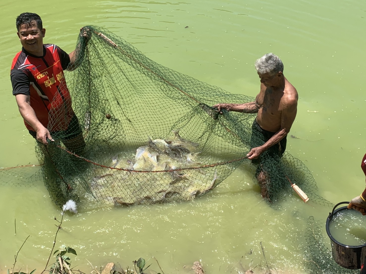 ประมงอำเภอเขื่องใน ลงพื้นที่บ้านแดงหม้อ เยี่ยมชมการจำหน่ายผลผลิตปลาตะเพียนขาว ให้แก่กลุ่มแปรรูปปลาส้ม บ้านคำครตา อ.ทรายมูล จ.ยโสธร