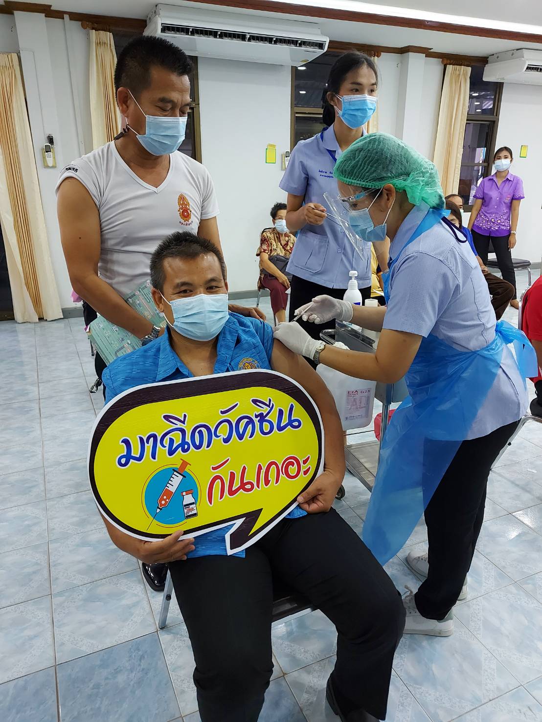 ประมงอำเภอม่วงสามสิบ การฉีดวัคซีน  “แอสตร้าเซนเนก้า” ป้องกันโรคติดเชื้อไวรัสโคโรนา 2019 เข็มที่ 1 ที่จุดบริการวัคซีน รพ.ม่วงสามสิบ อำเภอม่วงสามสิบ จ.อุบลราชธานี