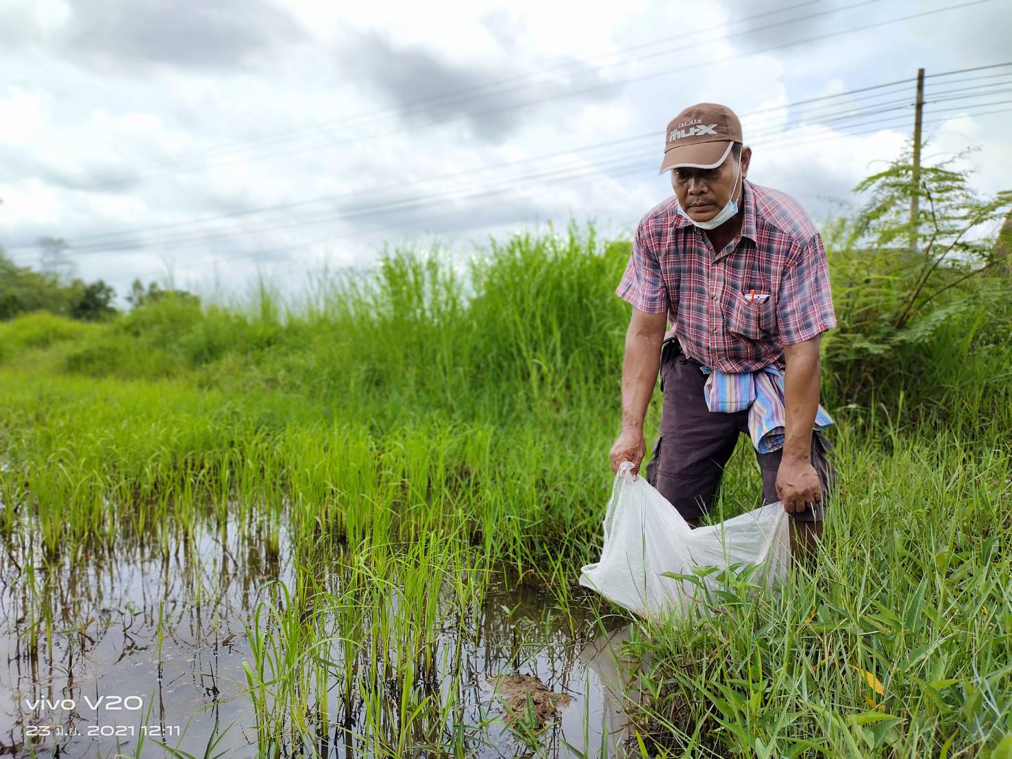 วันที่ 23 มิถุนายน 2564 นายวิทยา โกษาผล ประมงอำเภอเขื่องใน ร่วมกับเจ้าหน้าที่กลุ่มพัฒนาและส่งเสริมอาชีพการประมง และกำนันตำบลบ้านไทย อ.เขื่องใน จ.อุบลราชธานี ร่วมขับเคลื่อนงานโครงการส่งเสริมการเลี้ยงปลาในนาข้าวอินทรีย์ (งบกลุ่มภาคตะวันออกเฉียงเหนือตอนล่าง 2 ) ดังนี้ มอบปัจจัยการผลิต ได้แก่ รำละเอียด กระสอบละ 30 กก. แก่เกษตรกร รายละ 1 กระสอบ และลูกพันธุ์ปลาตะเพียนขาว ขนาด 5 – 7 ซม. จำนวน 1,300 ตัว ต่อราย แก่เกษตรกรที่เข้าร่วมโครงการ จำนวน 25 ราย ณ ศาลาประชาคมหมูที่ 7 บ้านไทย อำเภอเขื่องใน จังหวัดอุบลราชธานี พร้อมนี้ได้แนะนำและสาธิตวิธีการปล่อยลูกพันธุ์ปลา ตลอดจนวิธีการสร้างอาหารธรรมชาติเพื่อลดต้นทุนการเลี้ยงปลาในนาข้าว และร่วมปล่อยปลาลงเลี้ยงในนาข้าวร่วมกับเกษตรกรด้วย