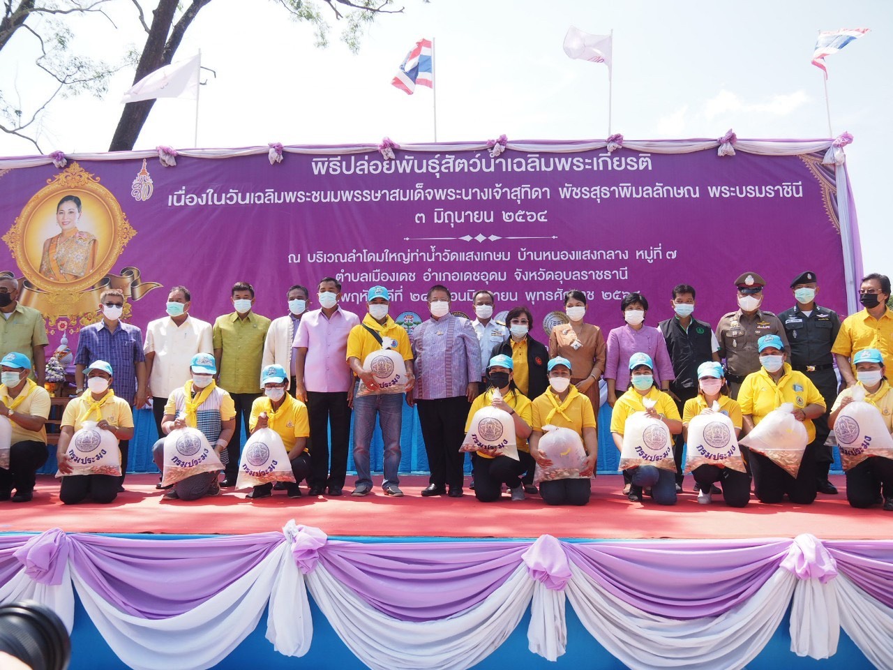 การจัดพิธีปล่อยพันธุ์สัตว์น้ำในวันนี้เพื่อเป็นการเฉลิมพระเกียรติ ถวายเป็นพระราชกุศลแด่สมเด็จพระนางเจ้าสุทิดา พัชรสุธาพิมลลักษณ