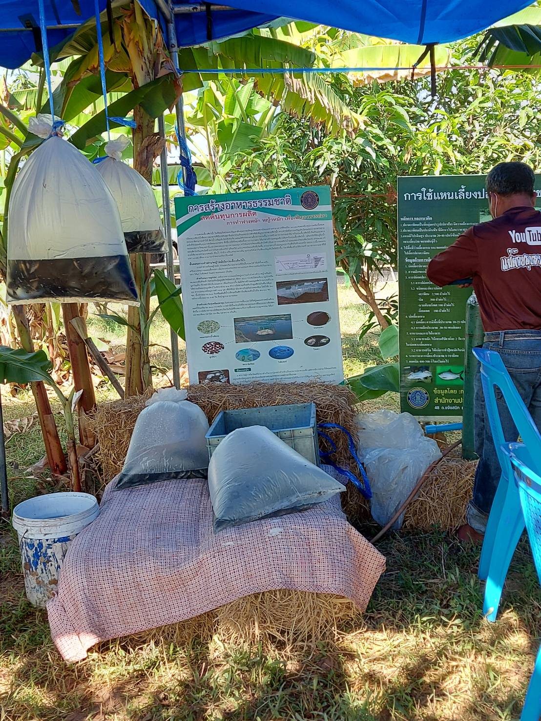 ประมงอำเภอม่วงสามสิบ ร่วมกับเกษตรกรเครือข่ายด้านประมง จ่วมจัดนิทรรศการและให้ความรู้  เรื่อง การสร้างอาหารธรรมชาติ การใช้แหนแดงเลี้ยงปลาตะเพียนขาวงาน field day อ.ม่วงสามสืบ จ.อุบลราชธานี