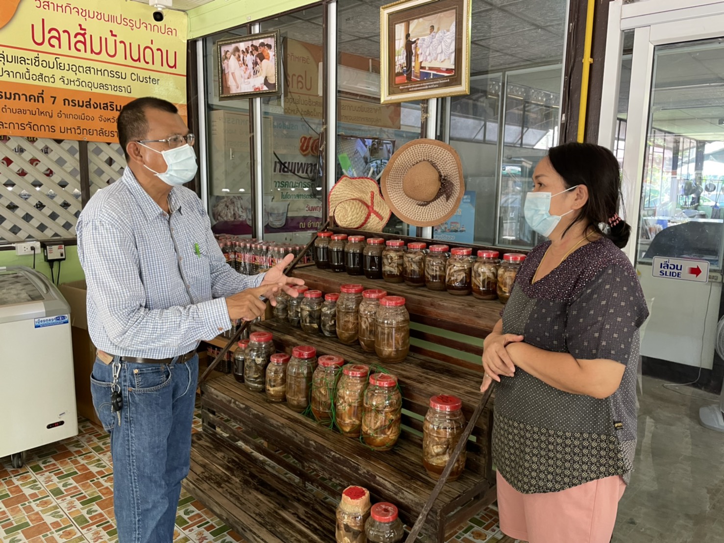 วันที่ 2 กรกฎาคม 2564 เวลา 13.00 น. นายสุนทร รุ่งเรือง หัวหน้ากลุ่มบริหารจัดการด้านการประมง พร้อมด้วยนายสุวิทย์ พัชนี นักวิชาการประมง เยี่ยมชมกิจกรรมองค์กรชุมชนประมงท้องถิ่นกลุ่มแปรรูปสัตว์น้ำบ้านด่านใหม่ ตำบลโขงเจียม อำเภอโขงเจียม จังหวัดอุบลราชธานี มีการดำเนินกิจกรรมแปรรูปสัตว์น้ำอย่างต่อเนื่อง ภายใต้สถานการณ์โควิด 19 ได้แก่ ปลาส้ม ปลาร้า แจ๋วบอง ปลาวง เป็นต้น