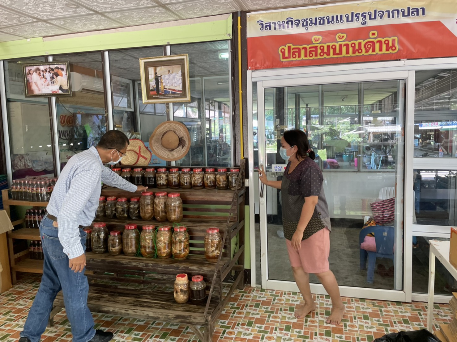 เจ้าหน้าที่กลุ่มบริหารจัดการด้านการประมงเยี่ยมชมกิจกรรมองค์กรชุมชนประมงท้องถิ่นกลุ่มแปรรูปสัตว์น้ำบ้านด่านใหม่ ตำบลโขงเจียม อำเภอโขงเจียม จังหวัดอุบลราชธานี
