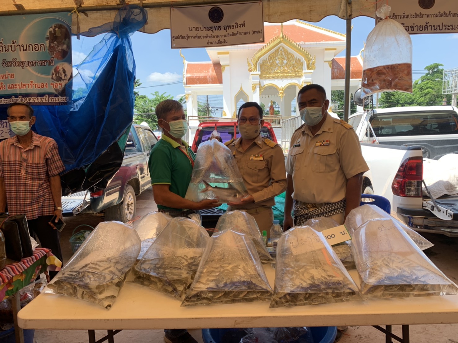 ประมงอำเภอเขื่องใน ร่วมพิธีเปิดโครงการตลาดสินค้าเกษตรประจำปี 2564