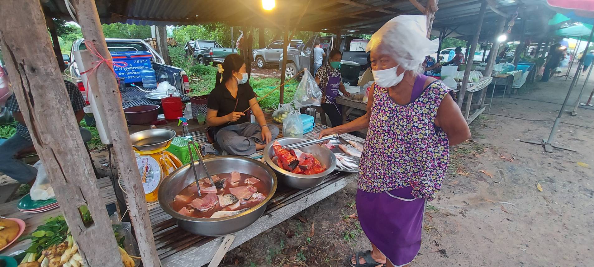 วันที่ 19 กรกฎาคม 2564 นางสาวบุญเลี้ยง ทองหุล ประมงอำเภอสว่างวีระวงศ์ ดำเนินการสำรวจตลาด เพื่อสอบถามข้อมูลการจำหน่ายสินค้าสัตว์น้ำ ณ ตลาดร่มพอก ม.1 ต.แก่งโดม อ.สว่างวีระวงศ์ จ.อุบลราชธานี ซึ่งดำเนินการเปิดตลาดจำหน่ายสินค้า ทุกเย็นวันจันทร์ และพฤหัสบดี ของทุกสัปดาห์