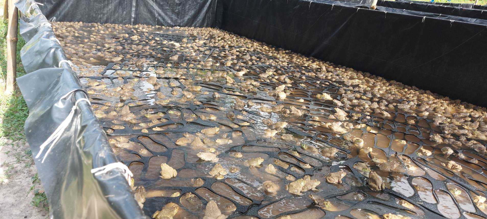 ประมงอำเภอสว่างวีระวงศ์ ลงพื้นที่เยี่ยมเยียนติดตามให้คำแนะนำ พร้อมทั้งแลกเปลี่ยนเรียนรู้วิธีการเพาะพันธุ์กบในบ่อพลาสติก(pe หนา 3 มม.) โดยใช้โครงเหล็กเป็นบ่อเลี้ยงและอนุบาล เพื่อเลี้ยงจำหน่ายเป็นลูกอ๊อดและกบเนื้อ ณ พี.ดี. ฟาร์มกบ หมู่ที่ 2 ต.ท่าช้าง อ.สว่างวีระวงศ์ จ.อุบลราชธานี