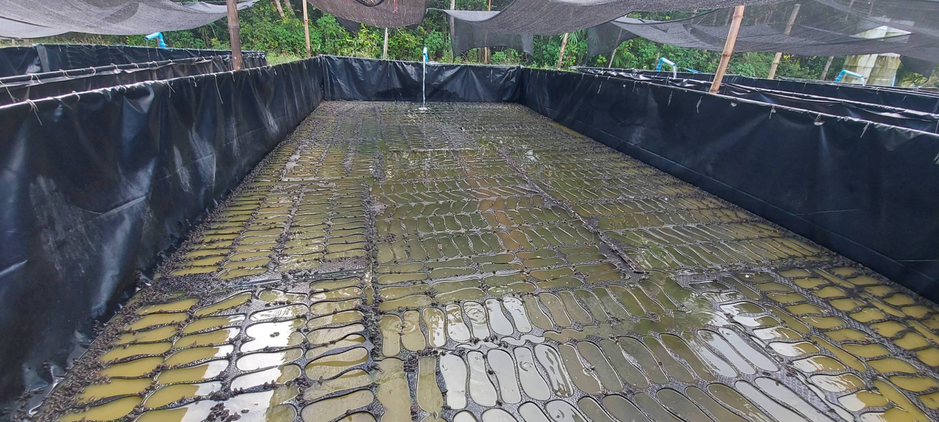 พบว่า การเลี้ยงกบในบ่อพลาสติก (pe หนา 3 มม.) โดยใช้โครงเหล็กเป็นบ่อเลี้ยงขนาดบ่อกว้าง 4x8 เมตร จำนวน 16 บ่อ และขนาดบ่อกว้าง 2x4 เมตร จำนวน 10 บ่อ สะดวกและง่ายในการจัดการการทำกิจกรรมต่างๆ ไม่ว่าจะเป็นการเลี้ยง การเพาะพันธุ์และอนุบาล การเปลี่ยนถ่ายน้ำ การให้อาหาร ทำให้ช่วยลดปัญหา และควบคุมการเกิดโรคในกบได้ดีกว่าในบ่อดิน แต่การเจริญเติบโตของกบและลูกอ๊อดอาจไม่ดีเท่ากับในบ่อดินแต่ก็มีความแตกต่างกันไม่มากนัก นอกจากนี้ทางฟาร์มยังมีการลดต้นทุนการผลิตค่าอาหารด้วยการทำอาหารเม็ดสำเร็จรูปให้กบกินเองภายในฟาร์ม