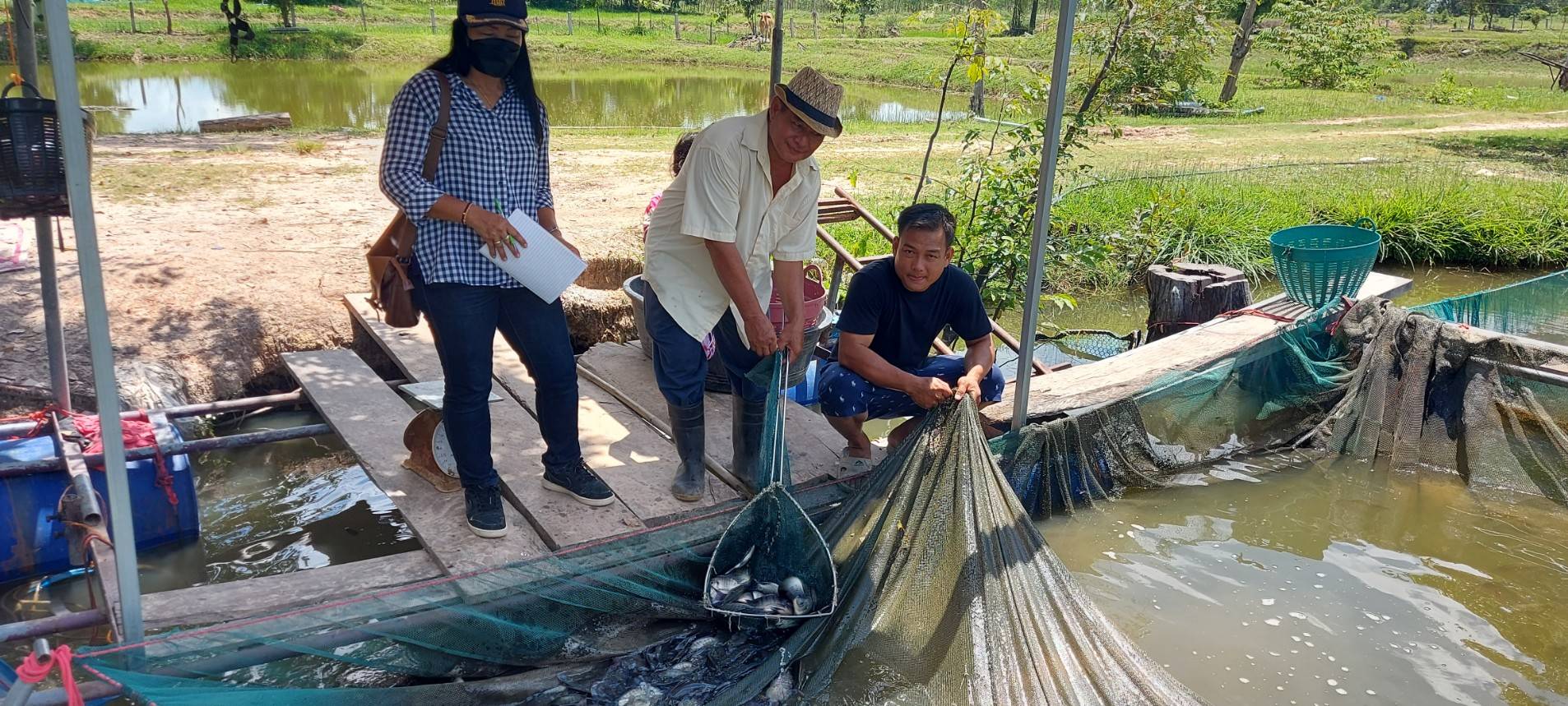 ประมงอำเภอวารินชำราบ รับผิดชอบงานด้านประมงอำเภอสำโรง ลงพื้นที่ติดตามและประเมินผลผลิตสัตว์น้ำโครงการศูนย์เรียนรู้การเพิ่มประสิทธิภาพการผลิตสินค้าเกษตร ประจำปี 2564