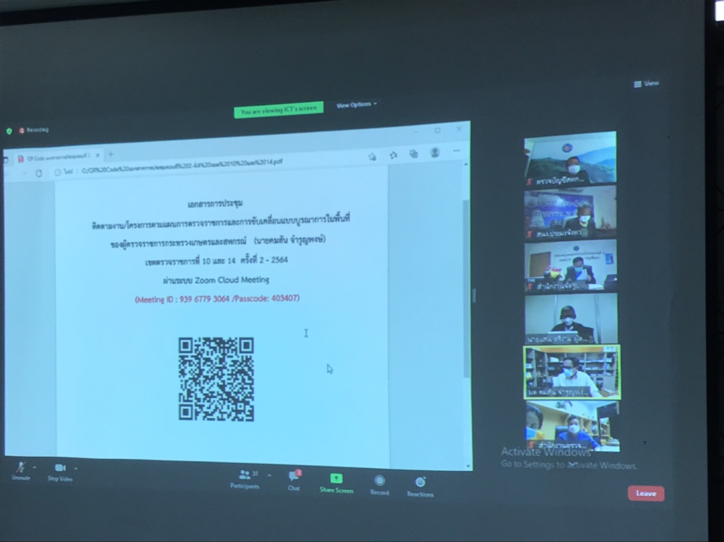 การประชุมติดตามงาน/โครงการตามแผนการตรวจราชการและการขับเคลื่อนแบบบูรณาการในพื้นที่ของผู้ตรวจราชการกระทรวงเกษตรและสหกรณ์ ประจำปีงบประมาณ พ.ศ. 2564 รอบที่ 2