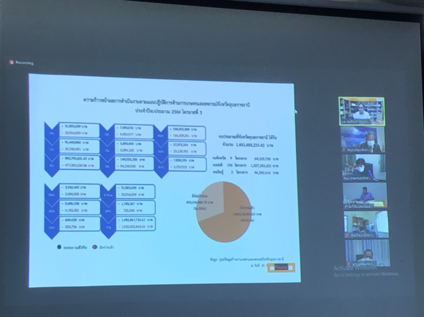 วันนี้ (20 สิงหาคม 2564) เวลา 09.00 น.  นายศุภกิตติ์ ใสกระจ่าง ประมงจังหวัดอุบลราชธานี พร้อมด้วยเจ้าหน้าที่สำนักงานประมงจังหวัดอุบลราชธานี เข้าร่วมการประชุมติดตามงาน/โครงการตามแผนการตรวจราชการและการขับเคลื่อนแบบบูรณาการในพื้นที่ของผู้ตรวจราชการกระทรวงเกษตรและสหกรณ์ ประจำปีงบประมาณ พ.ศ. 2564 รอบที่ 2 ผ่านระบบประชุมทางไกลออนไลน์ (ZOOM) ณ ห้องประชุมสำนักงานประมงจังหวัดอุบลราชธานี. โดยมีนายคมสัน จำรูญพงษ์ ผู้ตรวจราชการกระทรวงเกษตรและสหกรณ์ เขตตรวจราชการที่ 14 เป็นประธานในการประชุมดังกล่าว