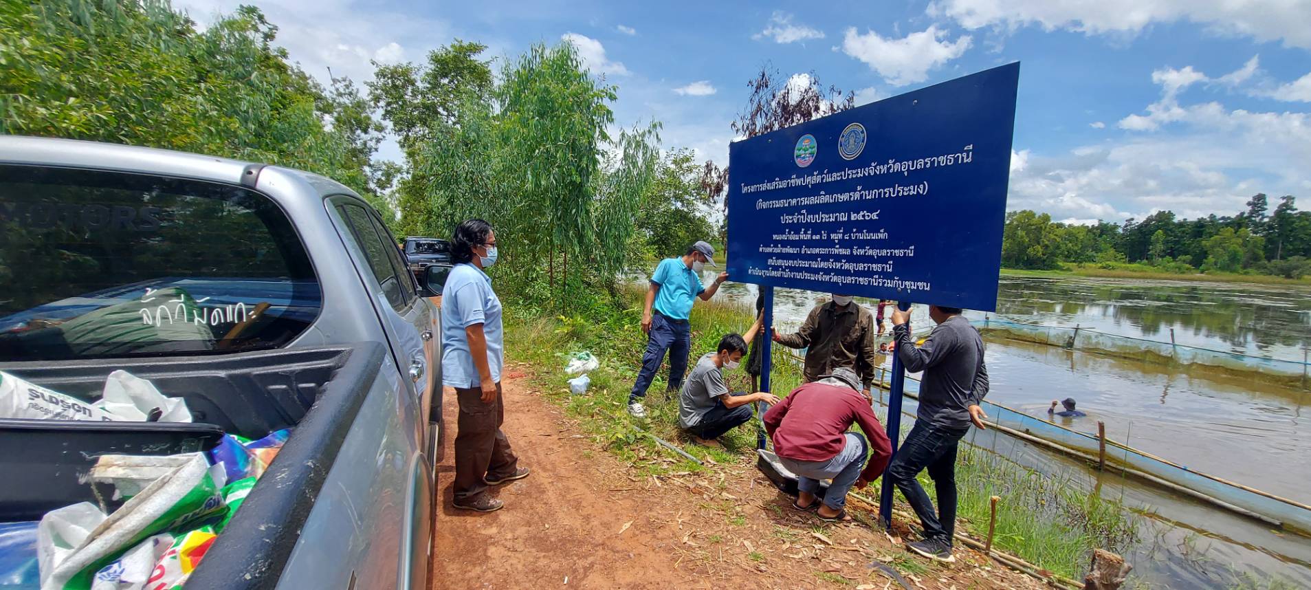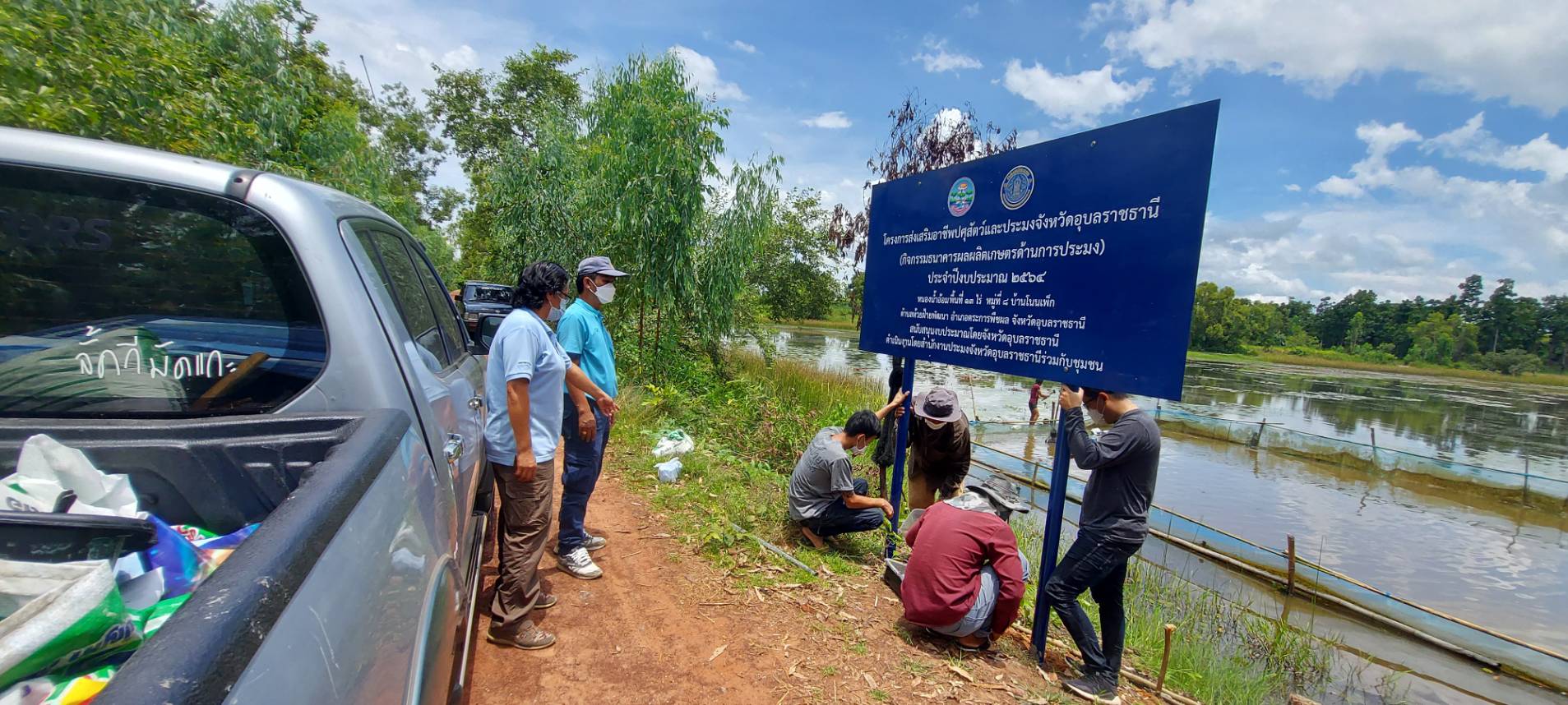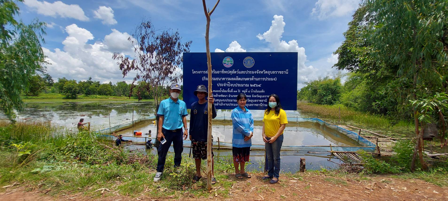 ประมงอำเภอตระการพืชผล ร่วมติดตั้งป้ายโครงการฯ กิจกรรมธนาคารผลผลิตเกษตรด้านการประมง ประจำปีงบประมาณ 2564 ตำบลห้วยฝ้ายพัฒนา อำเภอตระการพืชผล จังหวัดอุบลราชธานี