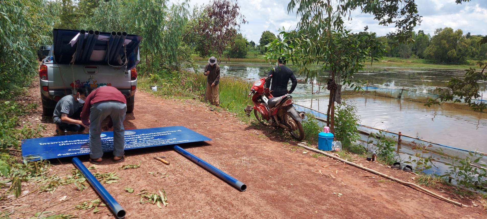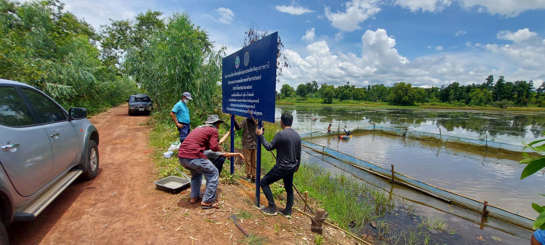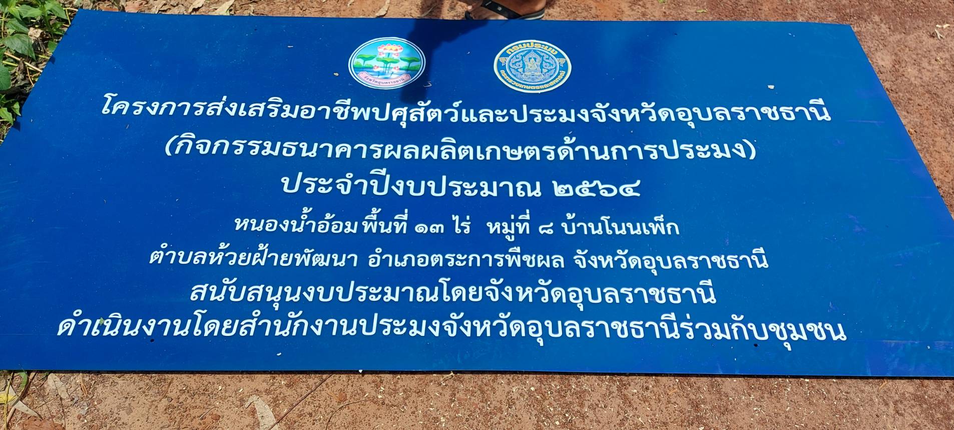 ประมงอำเภอตระการพืชผล ร่วมติดตั้งป้ายโครงการฯ กิจกรรมธนาคารผลผลิตเกษตรด้านการประมง ประจำปีงบประมาณ 2564 ตำบลห้วยฝ้ายพัฒนา อำเภอตระการพืชผล จังหวัดอุบลราชธานี