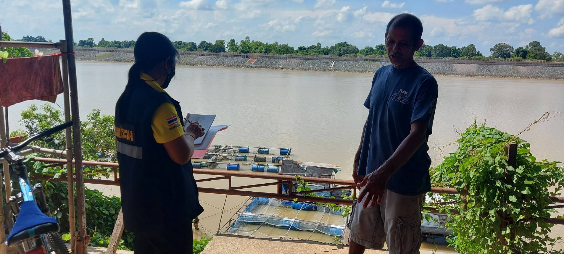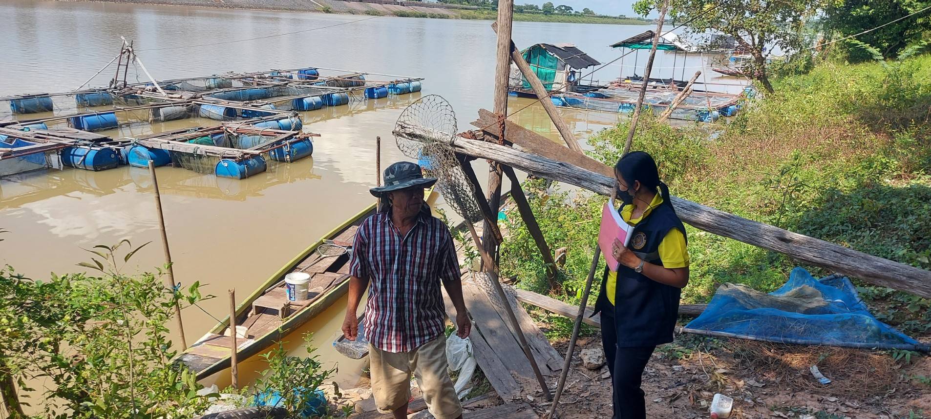 ประมงอำเภอวารินชำราบ ลงพื้นที่สอบถามข้อมูลผลผลิตการเลี้ยงปลาเชิงพาณิชย์ในกระชัง ในพื้นที่ ม.1 และ ม.5 ต.คำน้ำแซบ อ.วารินชำราบ จ.อุบลราชธานี ซึ่งเกษตรกรมีการเลี้ยงปลาในกระชัง จำนวน 12 ราย