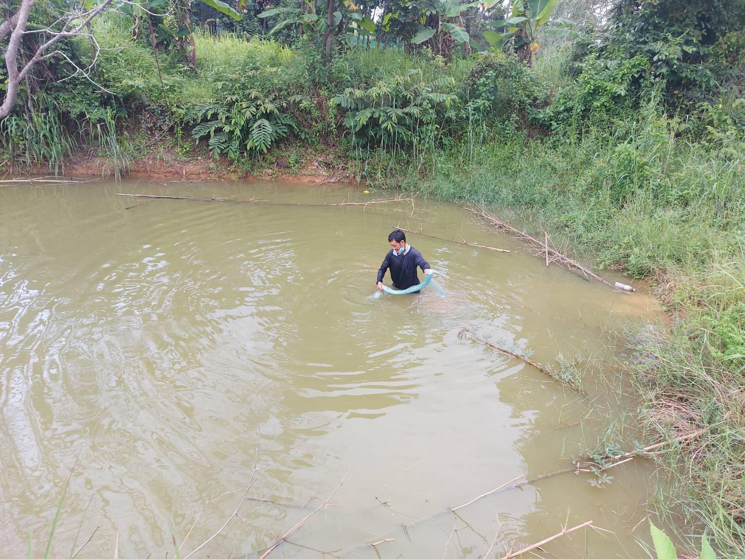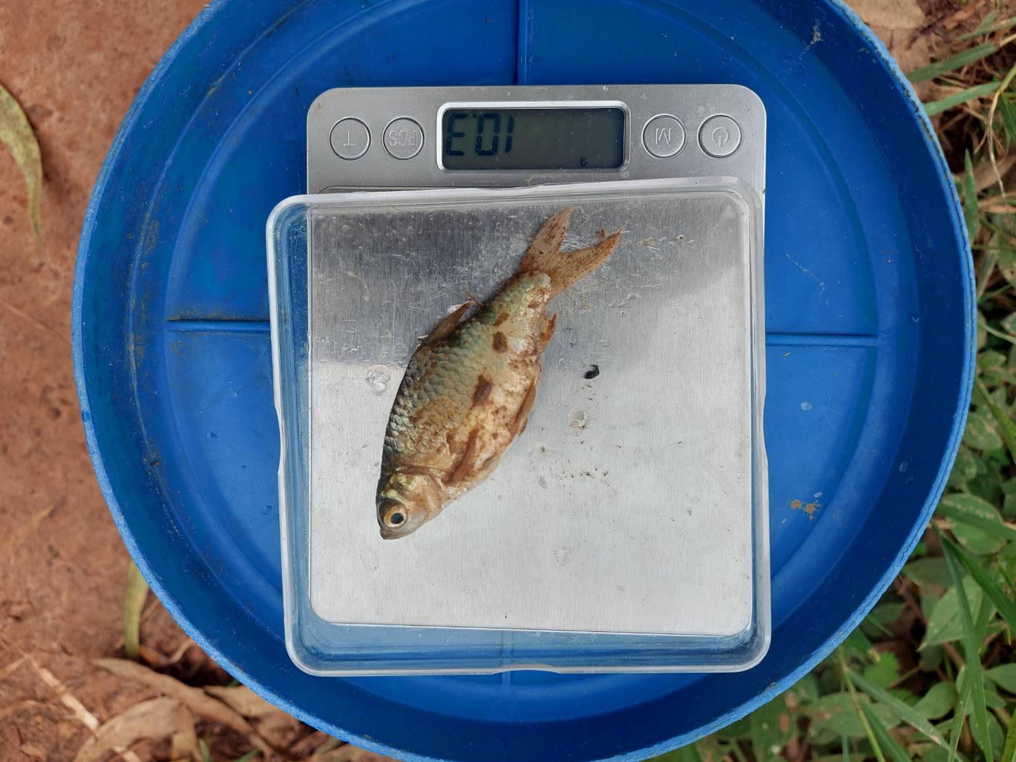 พบว่า ปลาตะเพียนที่ปล่อยเมื่อวันที่ 10 มิถุนายน 2564 จำนวน 2,000 ตัว มีการให้อาหารเม็ด ร่วมกับการสร้างอาหารธรรมชาติกองฟางข้าวหมักขี้วัวให้ปลากิน แต่ปลาก็ยังเจริญเติบโตไม่ค่อยดี เนื่องจากการเลี้ยงปลาแบบหนาแน่นในบ่อขนาดเล็ก 0.03 ไร่ และการให้อาหารอาจยังไม่เพียงพอต่อการบริโภคของปลา ปัจจุบันปลามีการเจริญเติบโตอยู่ที่ 200 ตัว/กก. จึงให้คำแนะนำให้เกษตรกรทำการย้ายปลาไปปล่อยในบ่อใหม่เพิ่มเติมและสร้างอาหารธรรมชาติให้ปลากินโดยใช้ฟางข้าวหมักขี้วัว