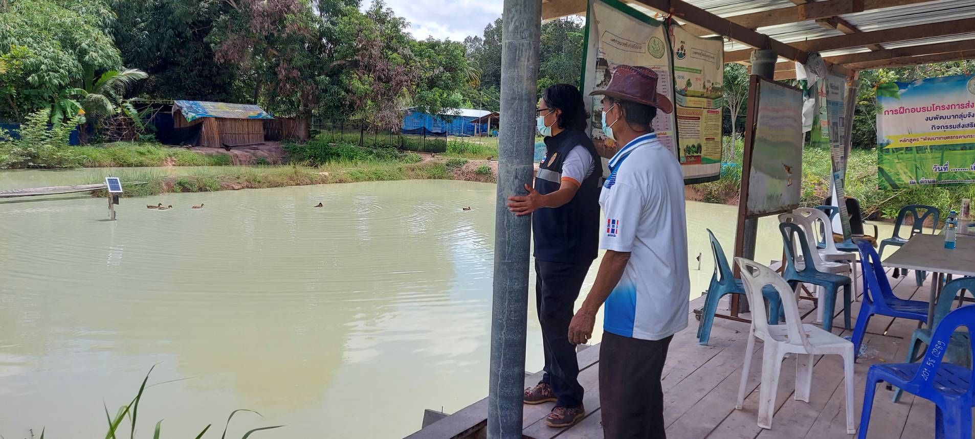วันที่ 9 กันยายน 2564 นางสาวหรรษา  ชิตกุล ประมงอำเภอตระการพืชผล ผู้รับผิดชอบงานด้านประมงอำเภอดอนมดแดง ตรวจเยี่ยมเครือข่ายศูนย์เรียนรู้การเพิ่มประสิทธิภาพการผลิตสินค้าเกษตรด้านการประมง นายวรวุฒิ เครือข่ายตำบลเหล่าแดง และนายสำรอง เครือข่ายตำบลดอนมดแดง อำเภอดอนมดแดง จังหวัดอุบลราชธานี เพื่อติดตามการดำเนินงาน และรายงานผลผลิตสัตว์น้ำที่ได้รับการสนับสนุน แลกเปลี่ยนเรียนรู้ ให้คำปรึกษา แก้ไขปัญหาและอุปสรรคในการเลี้ยงสัตว์น้ำค่