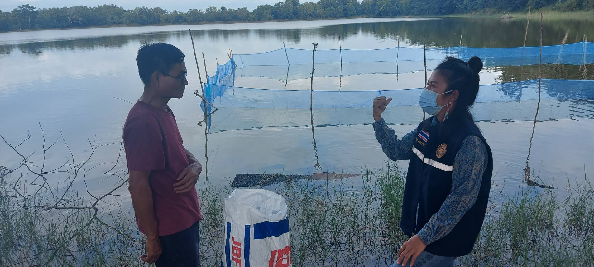 พบว่า ลูกปลาที่ปล่อยเมื่อวันที่ 6 กันยายน 2564 มีความแข็งแรง และขึ้นมากินอาหารบริเวณริมตลิ่งดีมาก โดยคณะกรรมการฯ ได้มีการหมุนเวียนกันมาดูแลและให้อาหารปลา ประมงอำเภอ จึงเน้นย้ำ เรื่องอาหารปลาควรมีการทำฟางข้าวหมักมูลสัตว์ไว้ให้ปลากินอย่างสม่ำเสมอ นอกเหนือจากอาหารเม็ดสำเร็จรูป เพื่อให้ปลามีอาหารกินตลอดเวลา สำหรับรำและปลาป่นให้ทำอาหารปั้นก้อนโดยใช้ปลายข้ามต้มผสมรำและปลาป่นปั้นเป็นก้อนวางพึ่งลมให้แห้งแล้วนำไปลอยให้ปลากิน