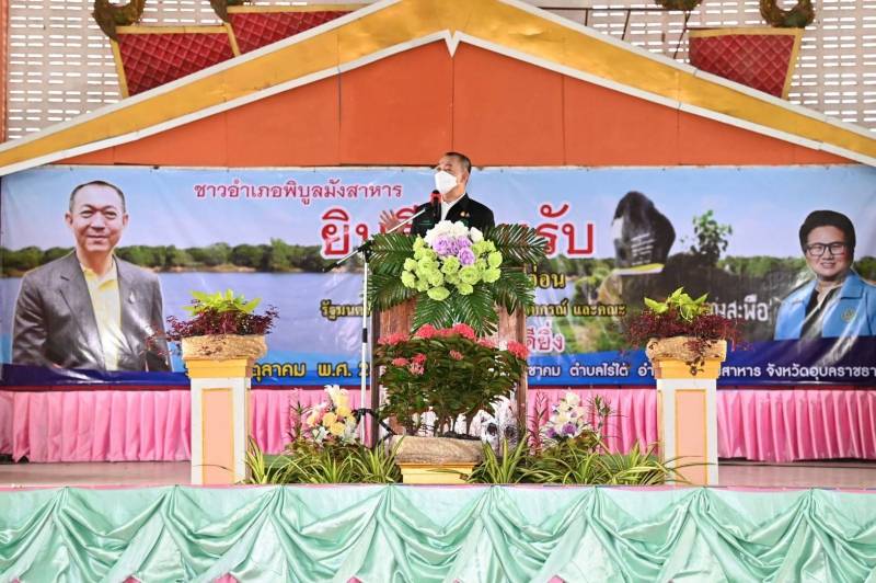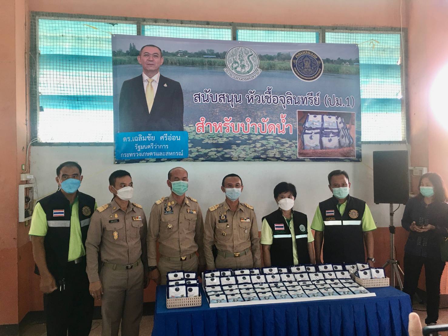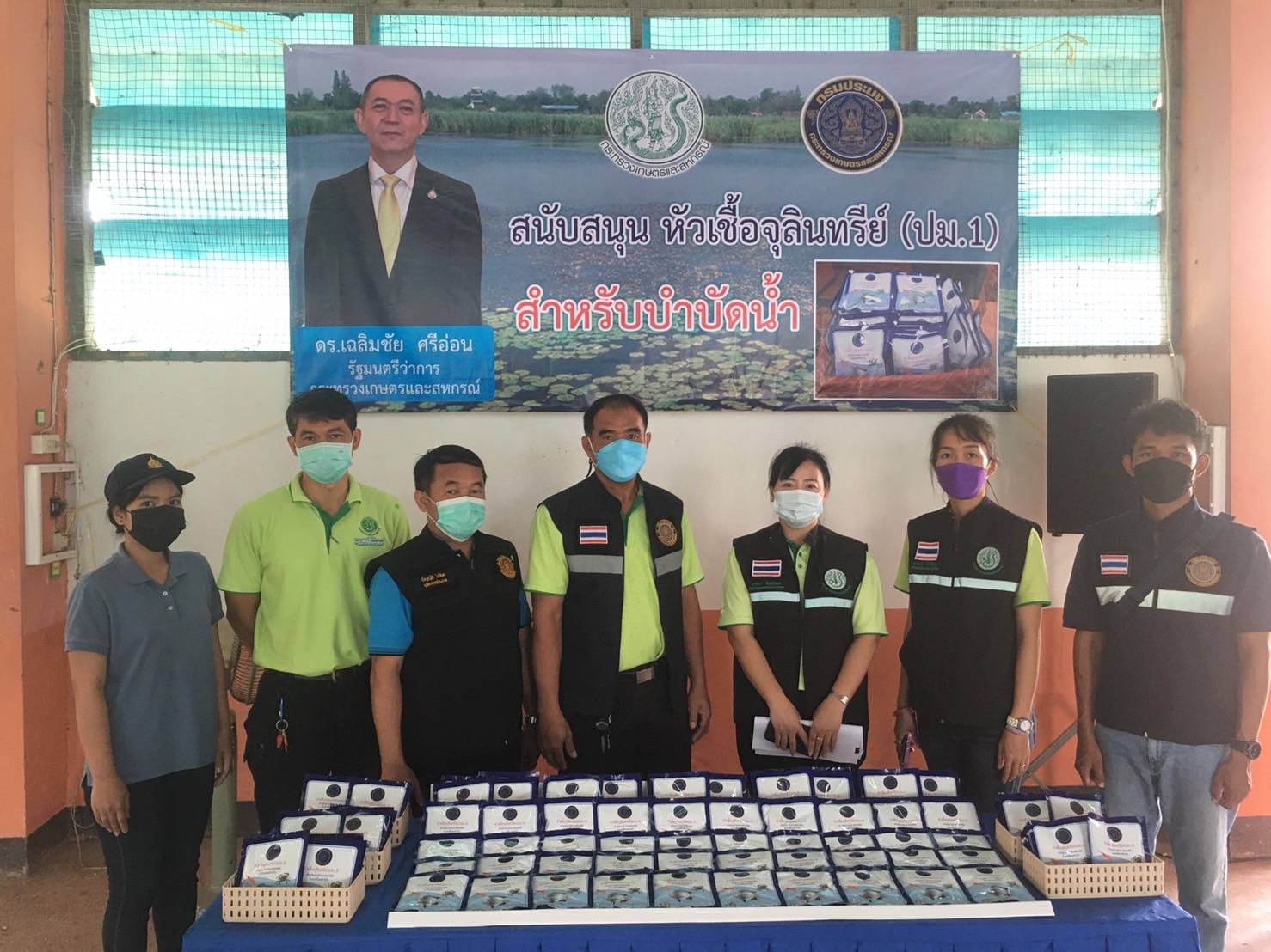 วันที่ 8 ตุลาคม 2564  เวลา 14.00 น. นายสมชวน รัตนมังคลานนท์ ผู้ตรวจราชการกระทรวงเกษตรและสหกรณ์ รักษาราชการแทนอธิบดีกรมประมง พร้อมด้วยคณะผู้บริหารหน่วยงานในสังกัดกรมประมง ลงพื้นที่ร่วมติดตามความคืบหน้าโครงการบรรเทาอุทกภัยเมืองอุบลราชธานี หวังช่วยบรรเทาและลดผลกระทบจากปัญหาอุทกภัยและภัยแล้งในพื้นที่ลุ่มน้ำชีและลุ่มน้ำมูลตอนล่างในระยะยาว ตามกำหนดการรัฐมนตรีว่าการกระทรวงเกษตรและสหกรณ์ (ดร.เฉลิมชัย ศรีอ่อน) ลงพื้นที่ตรวจราชการ ตำบลไร่ใต้ อำเภอพิบูลมังสาหาร จังหวัดอุบลราชธานี ในการนี้สำนักงานประมงจังหวัดอุบลราชธานี ในฐานะหน่วยงานสังกัดกรมประมง ได้มอบหัวเชื้อจุลินทรีย์ ปม.1 แก่เกษตรกรที่ได้รับผลกระทบจากปัญหาอุทกภัยในพื้นที่อำเภอพิบูลมังสาหาร โดย ดร.เฉลิมชัย ศรีอ่อน รัฐมนตรีว่าการกระทรวงเกษตรและสหกรณ์ เป็นผู้แทนมอบ ณ หอประชุมโรงเรียนไร่ใต้ประชาคม