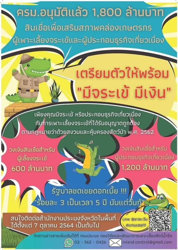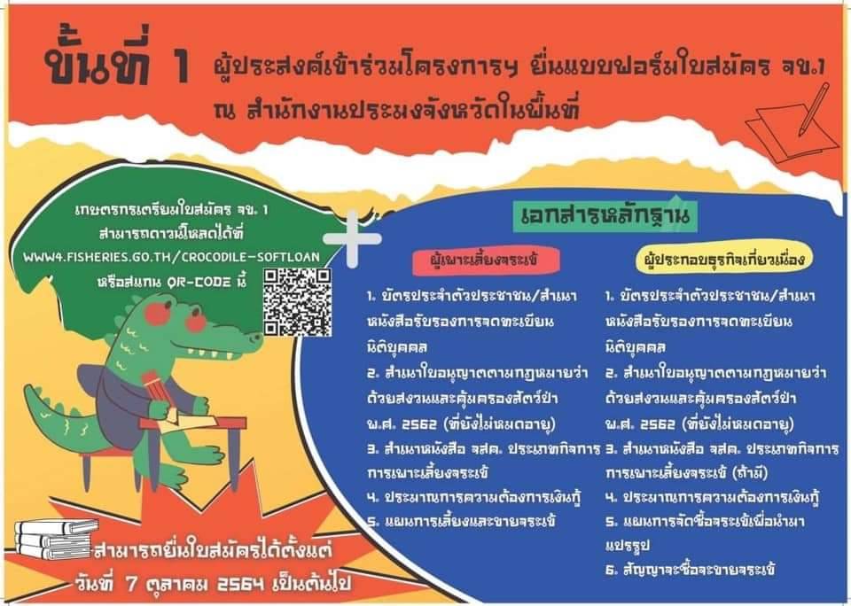 เปิดรับสมัครแล้ว... โครงการสินเชื่อเพื่อเสริมสภาพคล่องเกษตรกรผู้เพาะเลี้ยงจระเข้และผู้ประกอบธุรกิจเกี่ยวเนื่อง