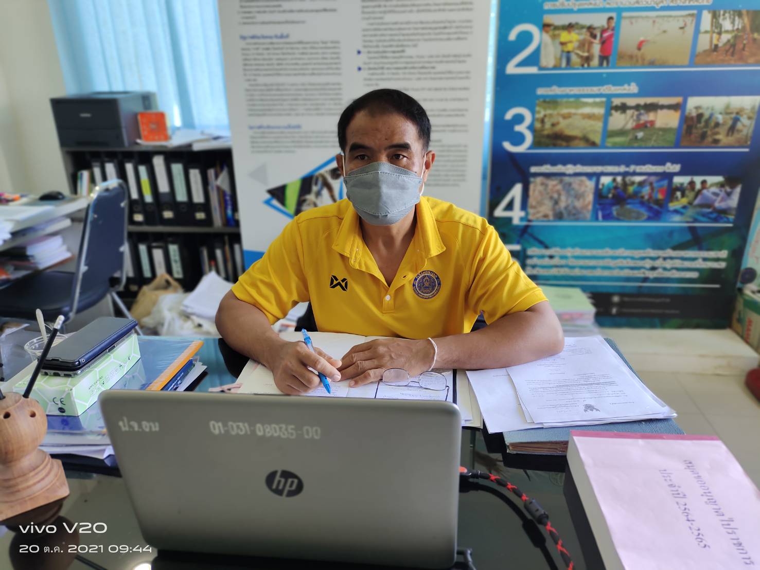 วันที่ 20 ตุลาคม 2564 เวลา 09.30 น. ณ ห้องปฏิบัติงานกลุ่มพัฒนาและส่งเสริมอาชีพการประมง นายประชุม ดวนใหญ่ หัวหน้ากลุ่มพัฒนาและส่งเสริมอาชีพการประมง พร้อมด้วยเจ้าหน้าที่กลุ่มพัฒนาและส่งเสริมอาชีพการประมง เข้าร่วมประชุมผ่านระบบ Application Zoom  เรื่อง แนวทางการดำเนินงานกิจกรรมพัฒนาผลิตภัณฑ์ประมง ประจำปีงบประมาณ 2565 ซึ่งการเข้าร่วมประชุมในครั้งนี้เพื่อเป็นแนวทางในการพัฒนาและการสนับสนุนกลุ่มเกษตรกรแปรรูปผลิตภัณฑ์สัตว์น้ำทางด้านวิชาการ เทคนิคการผลิต      การบรรจุและการใช้บรรจุภัณฑ์ที่เหมาะสม สุขลักษณะการผลิต และแนวทางการเสนอชื่อกลุ่มเกษตรกร/ผู้ประกอบการแปรรูปสัตว์น้ำเพื่อพัฒนาศักยภาพการผลิต ประจำปีงบประมาณ 2565 โดยการประชุมครั้งนี้ได้รับเกียรติจากนายบัญชา สุขแก้ว รองอธิบดีกรมประมง เป็นประธาน