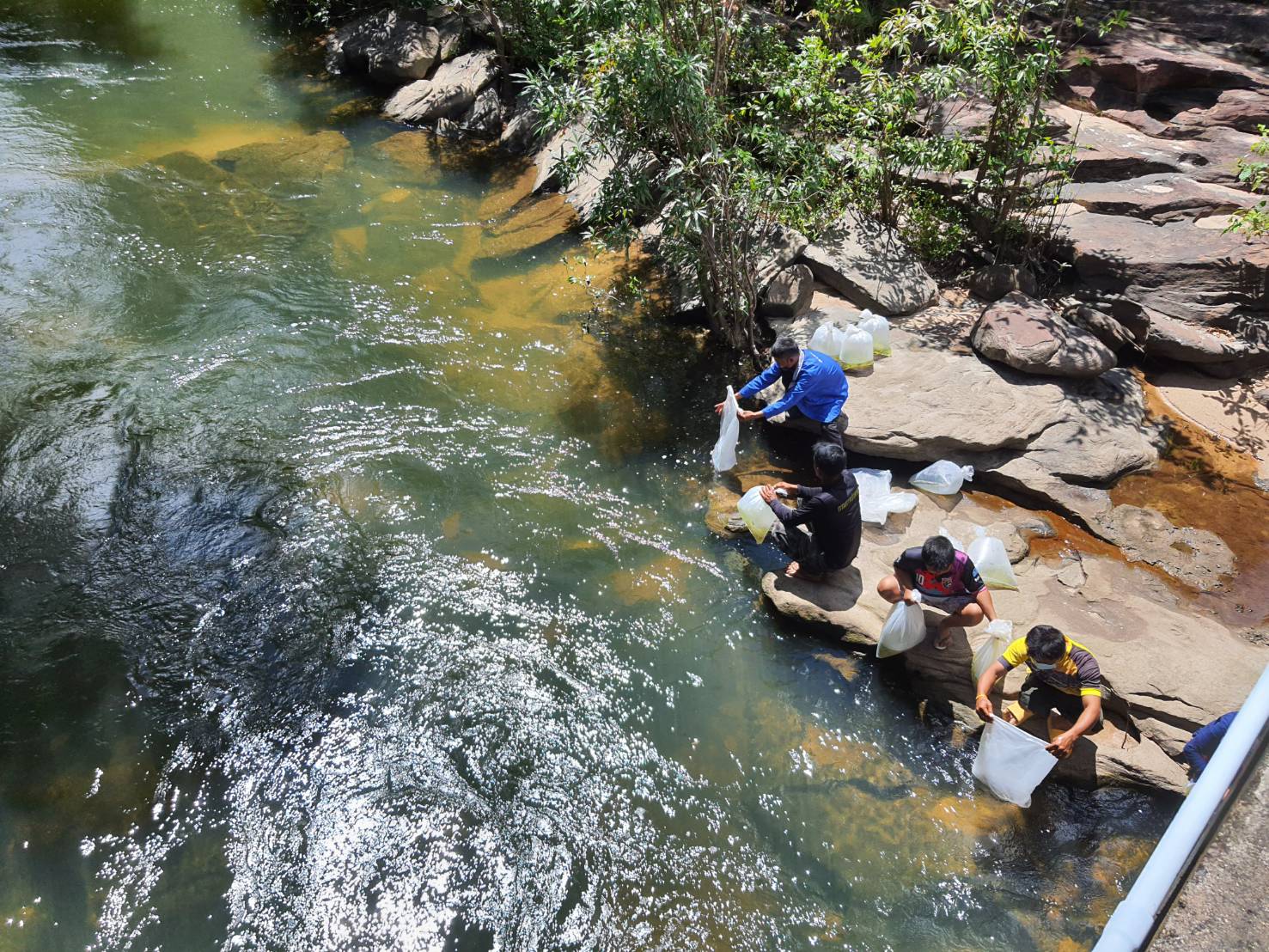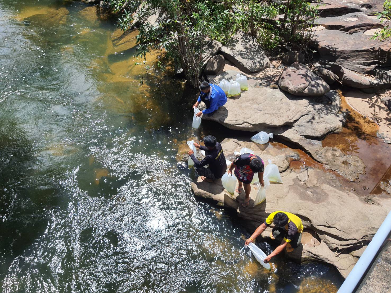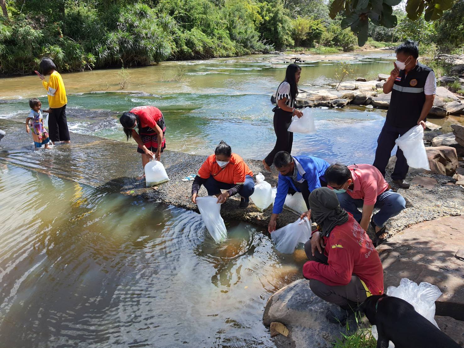 วันที่ 28 ตุลาคม 2564 เวลา 11.00 น. จ่าเอกศักดา  สมศรี ประมงอำเภอโขงเจียม ร่วมกับ นายธีระชัย พงศ์จรรยากุล ผู้อำนวยการศูนย์วิจัยและพัฒนาประมงน้ำจืดอุบลราชธานี ร่วมกับตัวแทนอนุกรรมการลุ่มน้ำโขงอำเภอโขงเจียม กำนันตำบลห้วยไผ่ พร้อมด้วยชาวบ้านในชุมชนบ้านหนองฆ้อง ปล่อยที่ลำห้วยยาง ตำบลห้วยไผ่ และชุมชนวัดสิริพะลานทราย ปล่อยที่ลำห้วย คูสูง ตำบลห้วยไผ่ โดยได้รับการสนับสนุนปลากาดำ จำนวน 50,000 ตัว จากศูนย์วิจัยและพัฒนาประมงน้ำจืดอุบลราชธานี ปล่อยจุดละ 25,000 ตัว ซึ่งลำห้วยทั้ง2 จะไหลลงสู่แม่น้ำโขงและจะเป็นแหล่งสร้างอาหารและความอุดมสมบูรณ์ของชุมชนตามแผนพัฒนาด้านการประมงในพื้นที่แม่น้ำโขงอย่างยั่งยืนต่อไป