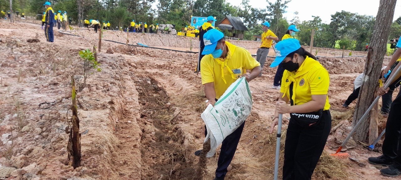 เจ้าหน้าที่สำนักงานประมงจังหวัดอุบลราชธานี เข้าร่วมกิจกรรมจิตอาสาเอามื้อสามัคคี ในแปลง โคก หนอง นา โมเดล ณ วัดป่าศรีแสงธรรม ต.ห้วยยาง อ.โขงเจียม จ.อุบลราชธานี