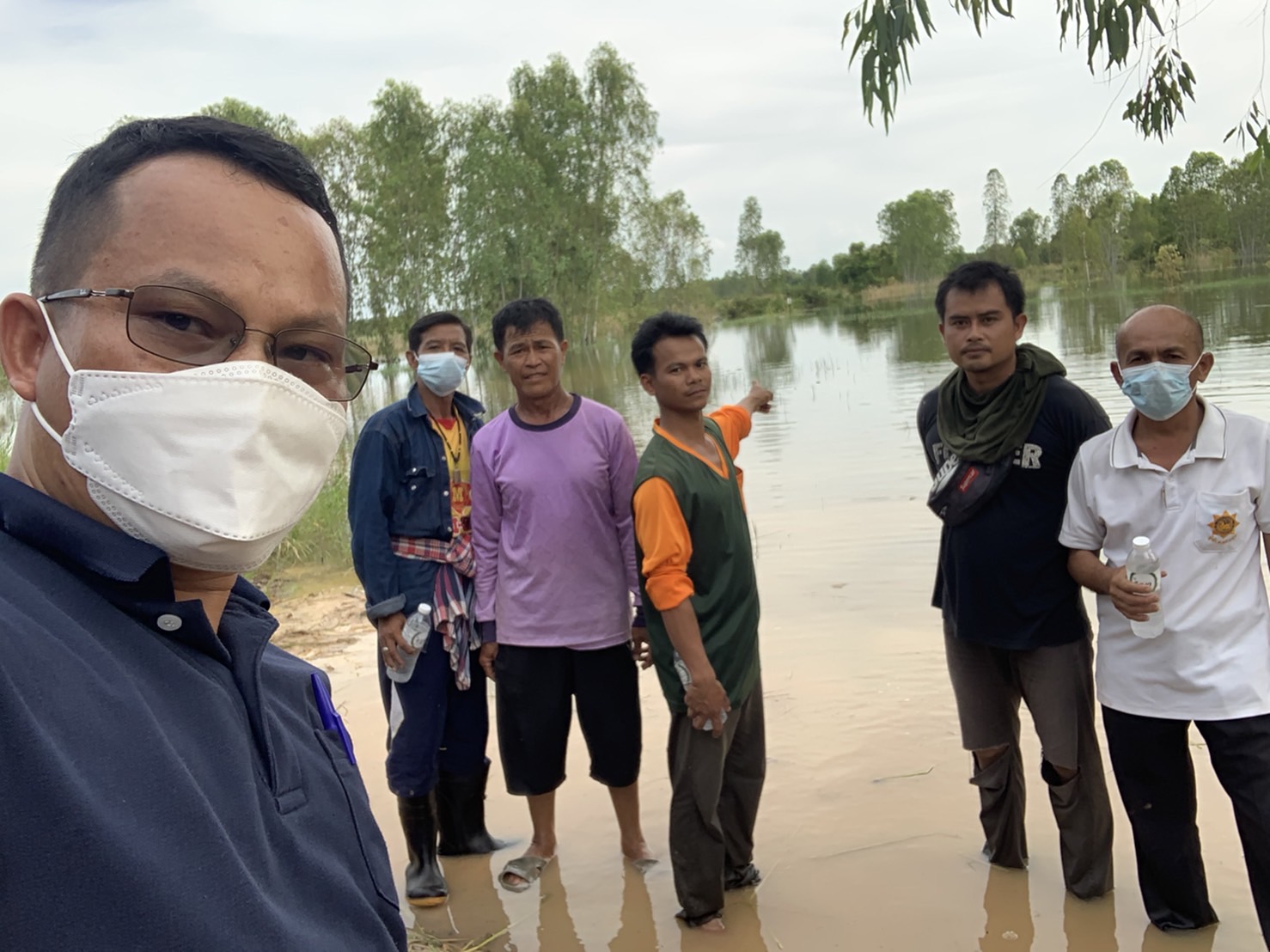 วันที่ 4 พฤศจิกายน 2564 เวลา 13.00 น. นายวิทยา โกษาผล ประมงอำเภอเขื่องใน  ลงพื้นที่บ้านกุดตากล้า ม.3 และ ม.4 ต.สร้างถ่อ อ.เขื่องใน จ.อุบลราชธานี ร่วมกับคณะอนุกรรมการระดับหมู่บ้าน และตำบล ร่วมตรวจสอบบ่อเลี้ยงปลาของเกษตรกรที่ได้รับความเสียหายจากอิทธิพลจากพายุเตี้ยนหมู่ พบว่าระดับน้ำที่เอ่อล้นจากแม่น้ำชีเข้าในพื้นที่สูงขึ้นอย่างต่อเนื่องยังไม่มีท่าทีว่าจะลดลง