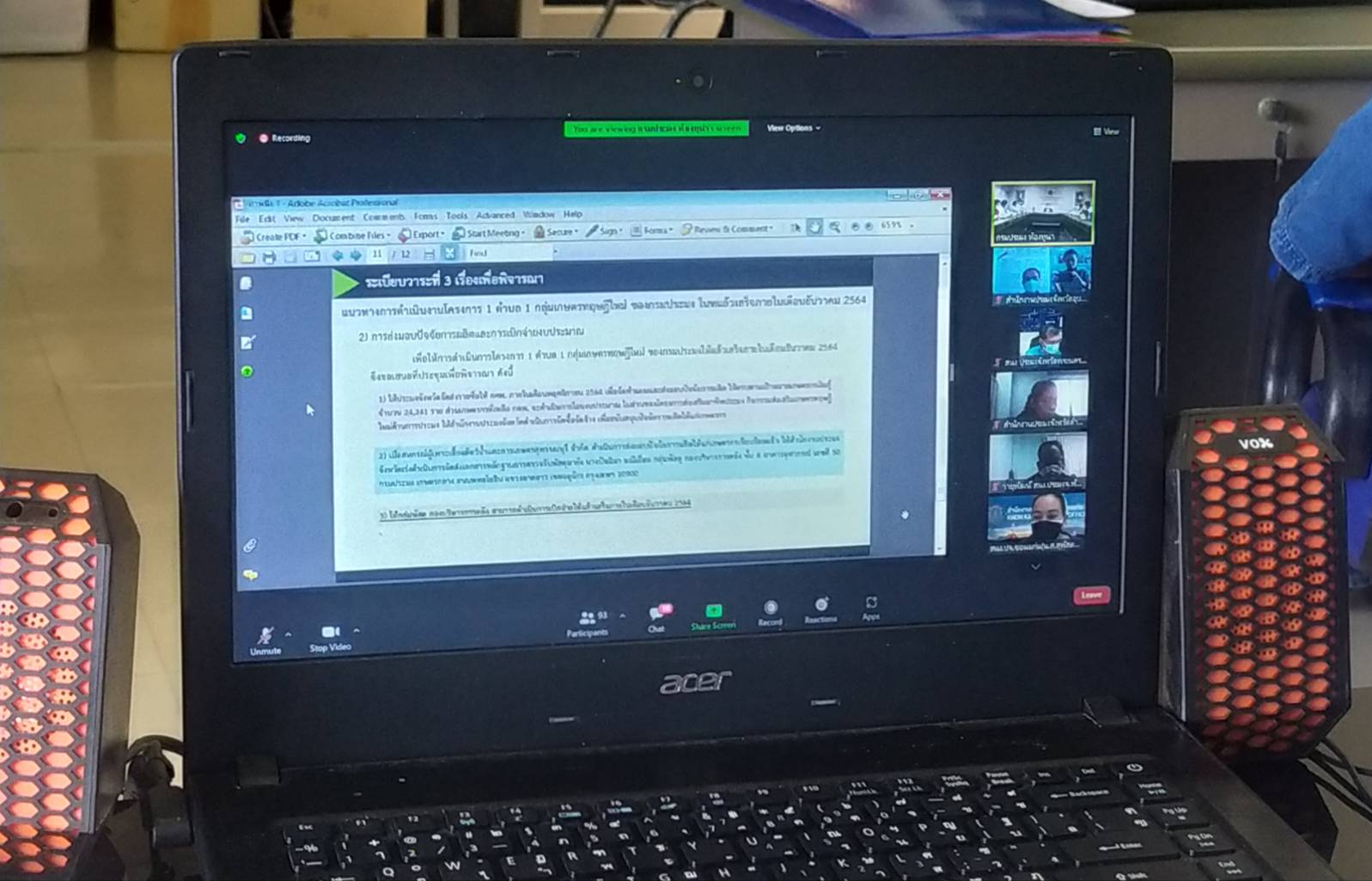 การประชุมติดตามความก้าวหน้าผลการดำเนินงานโครงการ 1 ตำบล 1 กลุ่มเกษตรทฤษฎีใหม่ ผ่านระบบทางไกลออนไลน์ Application Zoom Meeting