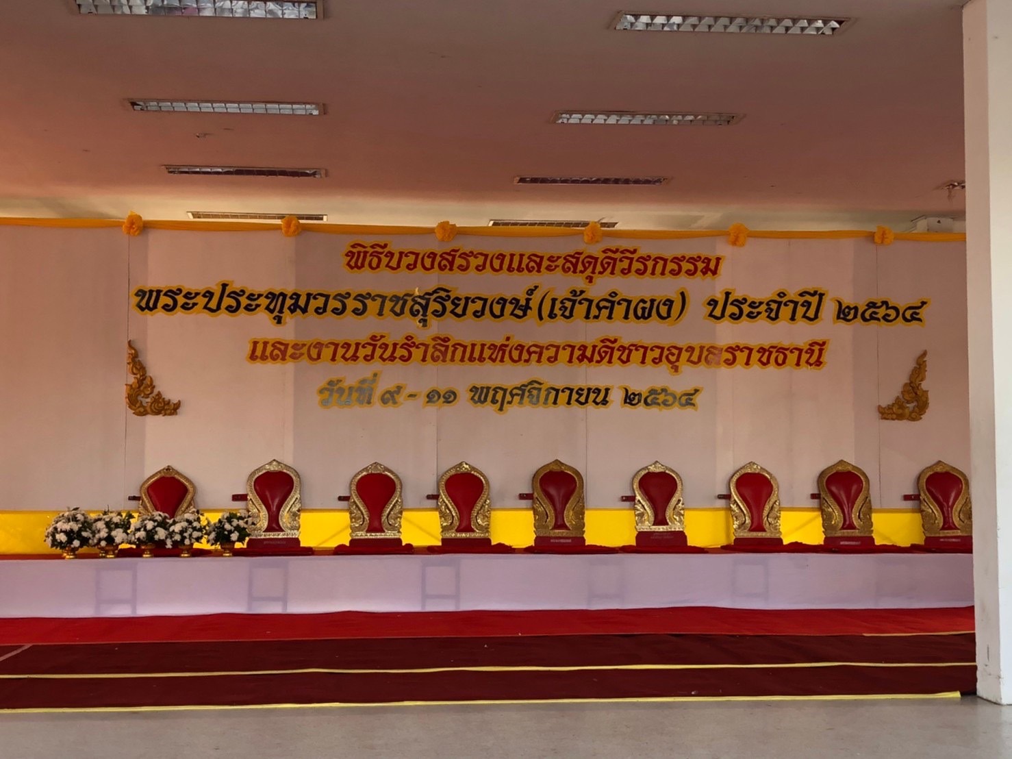 วันที่ 10 พฤศจิกายน 2564 นางเพชรรัตน์  สมเสนาะ หัวหน้ากลุ่มบริหารและยุทธศาสตร์ พร้อมคณะ ร่วมพิธีบวงสรวงและสดุดีวีรกรรมพระประทุมวรราชสุริยวงษ์ (เจ้าคำผง) ประจำปี 2564 ณ บริเวณทุ่งศรีเมือง จังหวัดอุบลราชธานี โดยมีนาย? พงศ์รัตน์ ภิรมย์รัตน์ ผู้ว่าราชการจังหวัดอุบลราชธานี เป็นประธานในพิธี