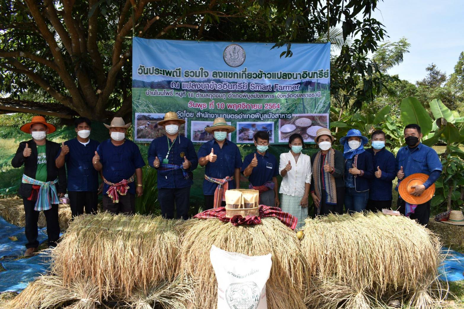 ประมงอำเภอพิบูลมังสาหาร และหัวหน้าส่วนราชการอำเภอพิบูลมังสาหาร ร่วมกิจกรรมวันประเพณีรวมใจลงแขกเกี่ยวข้าวแปลงนาอินทรีย์ ณ.แปลงนาข้าวนายคลัง โฮมคำ บ้านโนนโพธิ์ ต.กุดชมภู อ.พิบูลมังสาหาร