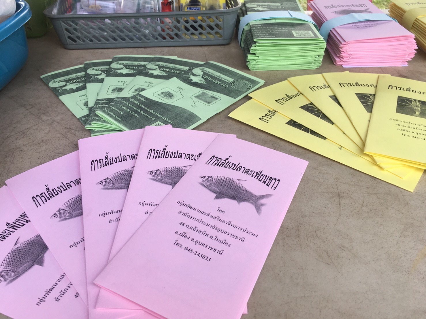 2. แจกเอกสารการเพาะเลี้ยงสัตว์น้ำ และแหนแดงเพื่อใช้เป็นอาหารสัตว์น้ำ