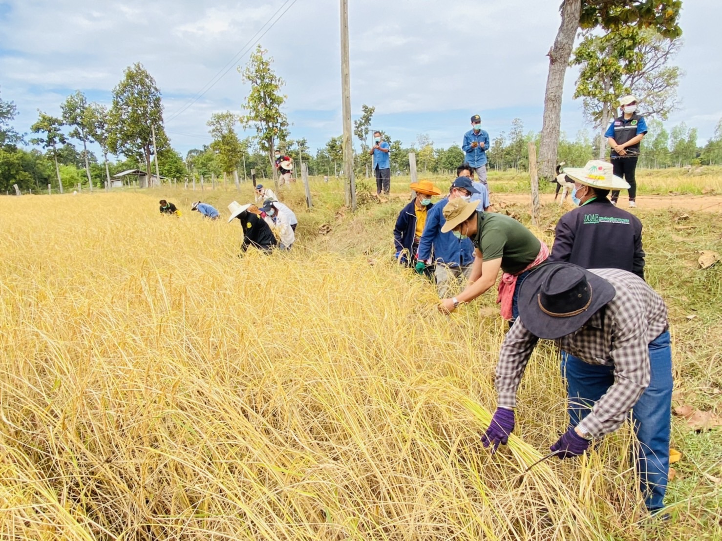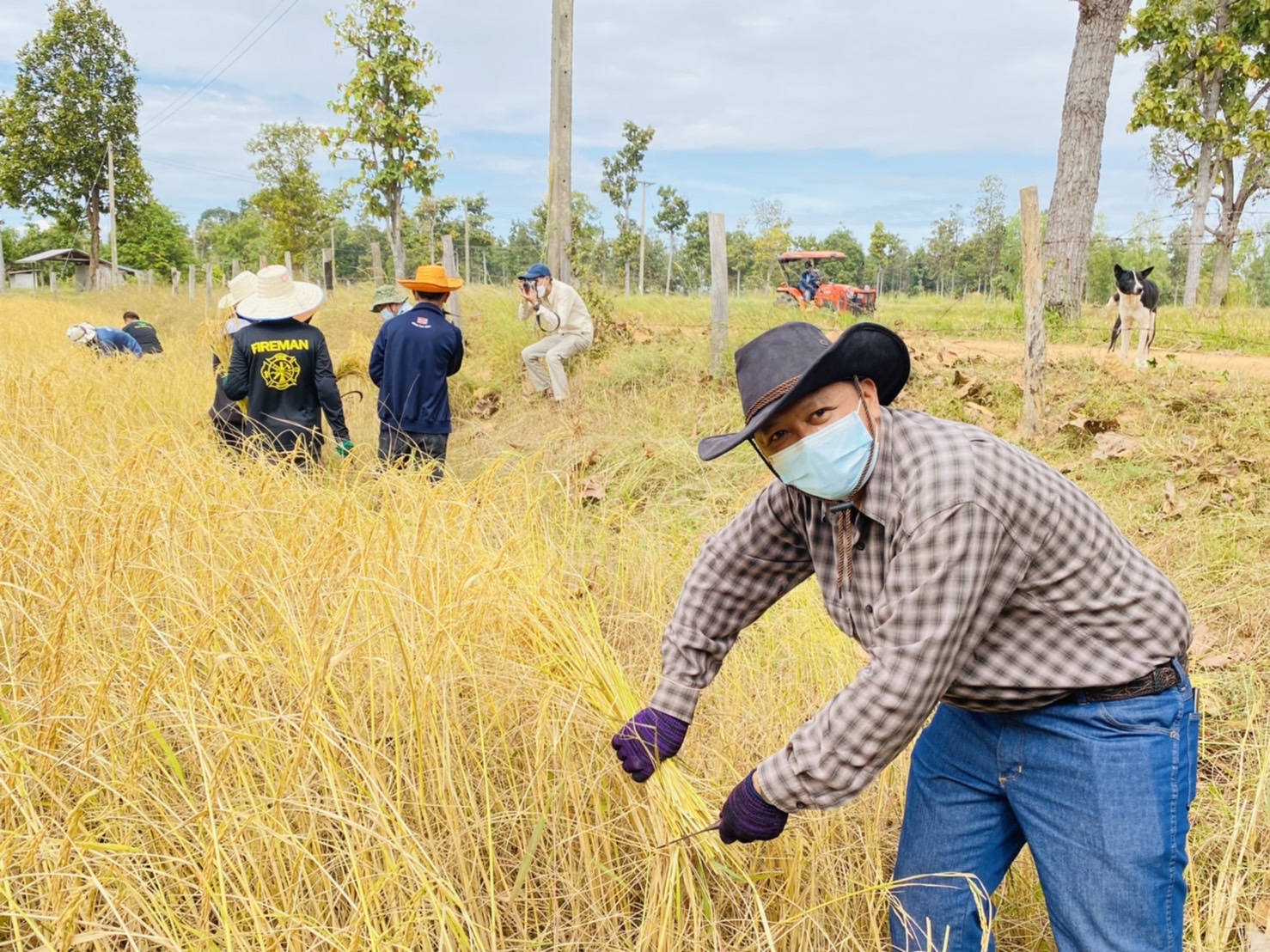 ประมงอำเภอเขมราฐ ออกปฏิบัติงานร่วมกิจกรรมลงแขกเกี่ยวข้าวรณรงค์ไถกลบตอซังและหยุดเผาพื้นที่เกษตร ณ แปลงเรียนรู้การใช้ปุ๋ยตามค่าวิเคราะห์ดิน ของนายไกร สุระมูล บ้านหนองว้า ม.12 ต.หนองผือ อ.เขมราฐ จ.อุบลฯ