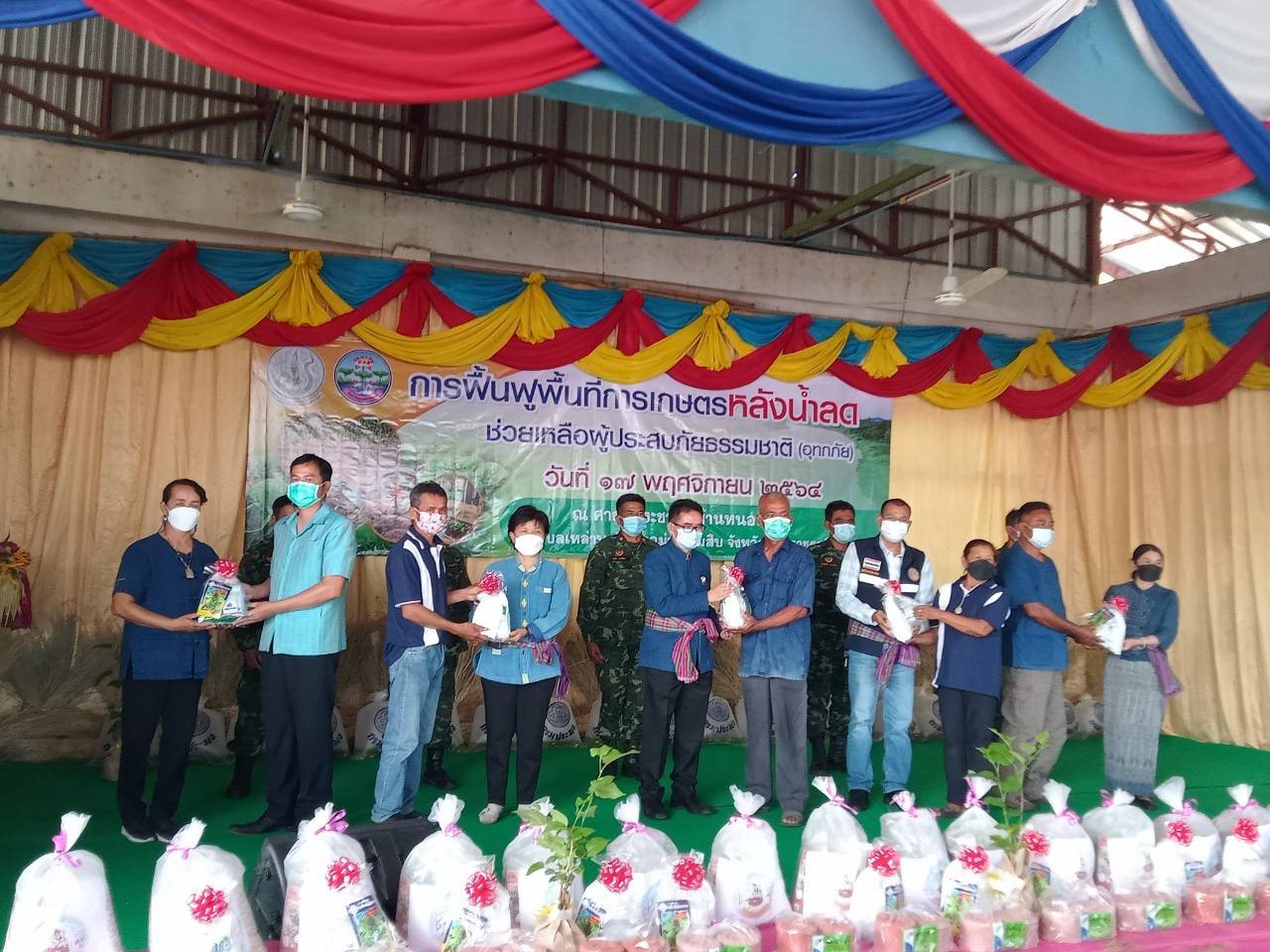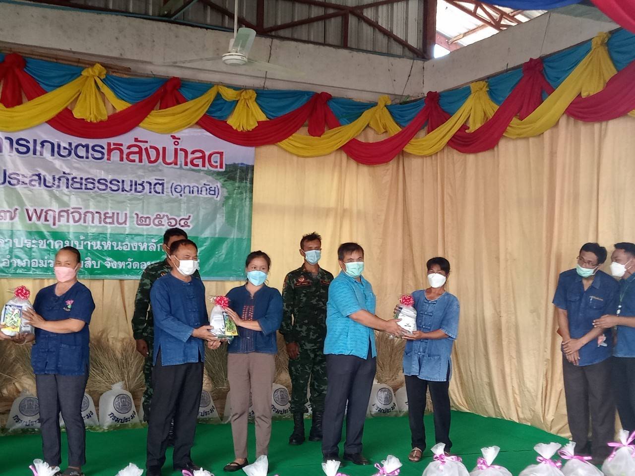 วันที่ 17 พฤศจิกายน  2564 นายธงชัย ชาตำแย ประมงอำเภอม่วงสามสิบ ร่วมงานฟื้นฟูการเกษตรหลังน้ำลดช่วยเหลือผู้ประสบภัยธรรมชาติ (อุทุกภัย) ณ ศาลาประชาคมบ้านหนองหลัก ม.9 ต.เหล่าบก อ.ม่วงสามสิบ จ.อุบลราชธานี สำนักงานประมงจังหวัดอุบลราชธานี โดย นายสุนทร  รุ่งเรือง หัวหน้ากลุ่มบริหารจัดการด้านการประมง เป็นผู้แทนประมงจังหวัด และคณะได้นำพันธุ์ปลานิลมามอบให้เกษตรกรผู้ประสบภัย จำนวน 40 ถุง
