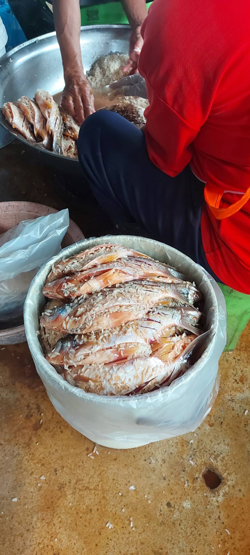 วันที่ 24 ธ.ค.64 นางสุภาพร  วัฒนสิทธิ์ ประมงอำเภอวารินชำราบ ลงพื้นที่ ติดตามตรวจเยี่ยมและสอบถามข้อมูลการดำเนินกิจกรรมของกลุ่มวิสาหกิจชุมชนปลาส้มบ้านคำกลาง ต.บุ่งไหม อ.วารินชำราบ ณ ปัจจุบันมีสมาชิก 10 คน กำลังผลิตเฉลี่ยต่อเดือน 1500 กก.จำหน่ายภายในจังหวัดและต่างจังหวัด และทางเฟสบุ๊ค ในชื่อ (เจ๊ทิพย์ปลาส้ม)