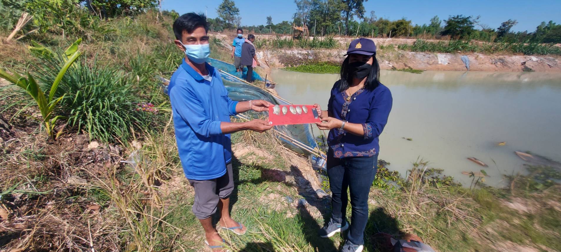 ประมงอำเภอวารินชำราบ รับผิดชอบงานด้านประมงอำเภอสำโรง ลงพื้นที่สำรวจผลผลิตสัตว์น้ำของเกษตรกรที่เข้าร่วมโครงการ 1 ตำบล 1 กลุ่มทฤษฎีใหม่ ในพื้นที่  ตำบลโนนกาเล็น  อำเภอสำโรง