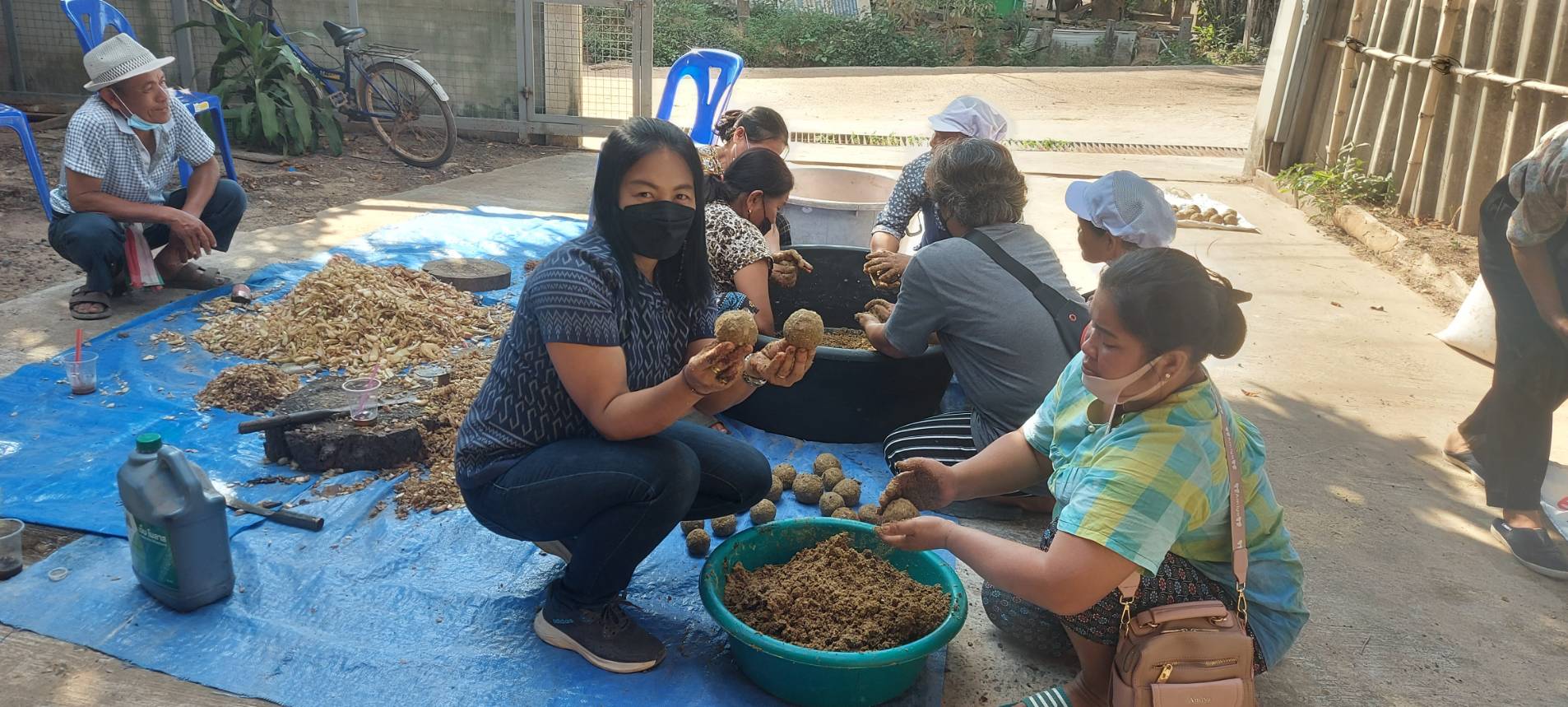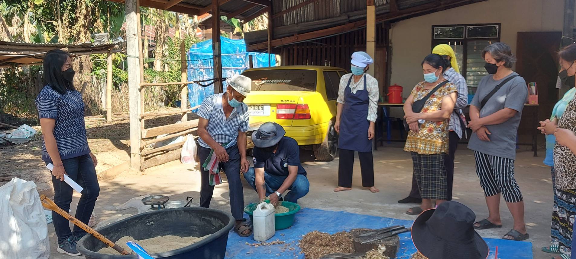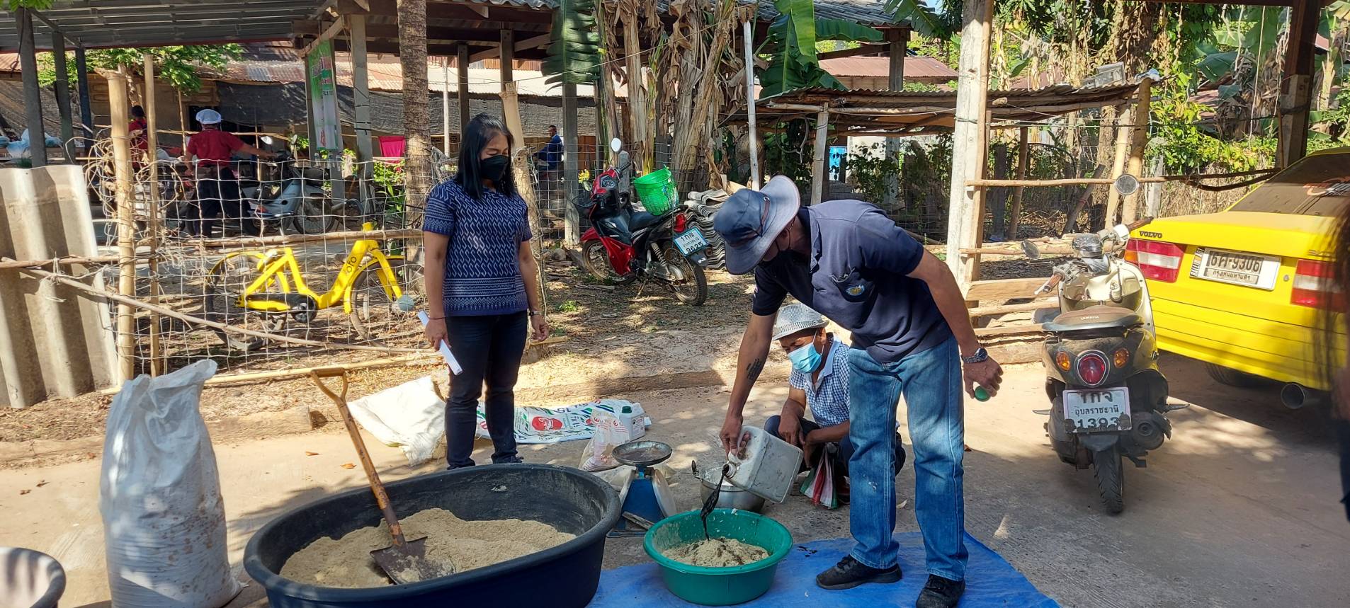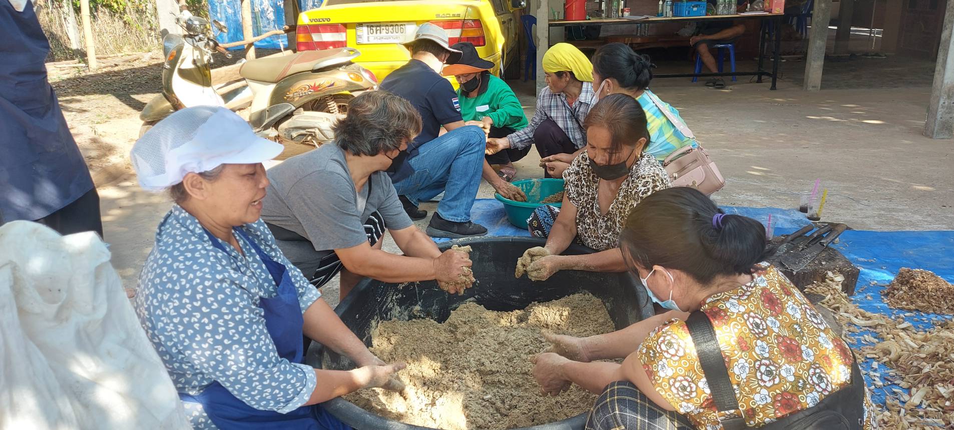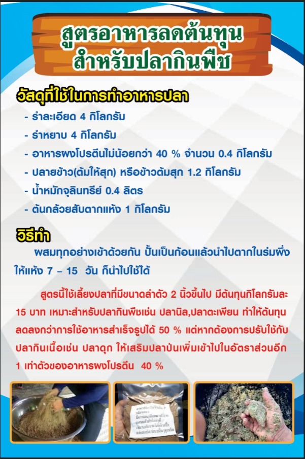 ประมงอำเภอวารินชำราบ  สาธิตให้ความรู้ การทำอาหารลดต้นทุนในการเลี้ยงปลา แก่เกษตรกรที่เข้าร่วมโครงการ 1 ตำบล 1 กลุ่มทฤษฎีใหม่ ปี 2564 อำเภอวารินชำราบ จังหวัดอุบลราชธานี