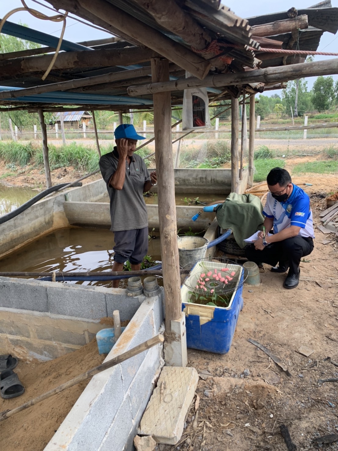 ประมงอำเภอเขื่องใน สำรวจการข้อมูลการเลี้ยงหอยเชอรี่ บ้านศรีบัว ต.สร้างถ่อ อ.เขื่องใน จ.อุบลราชธานี