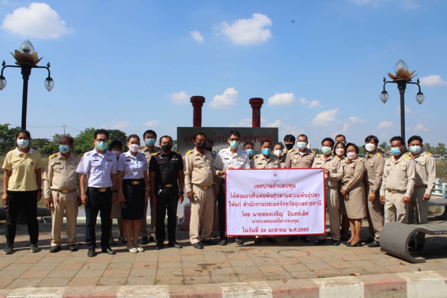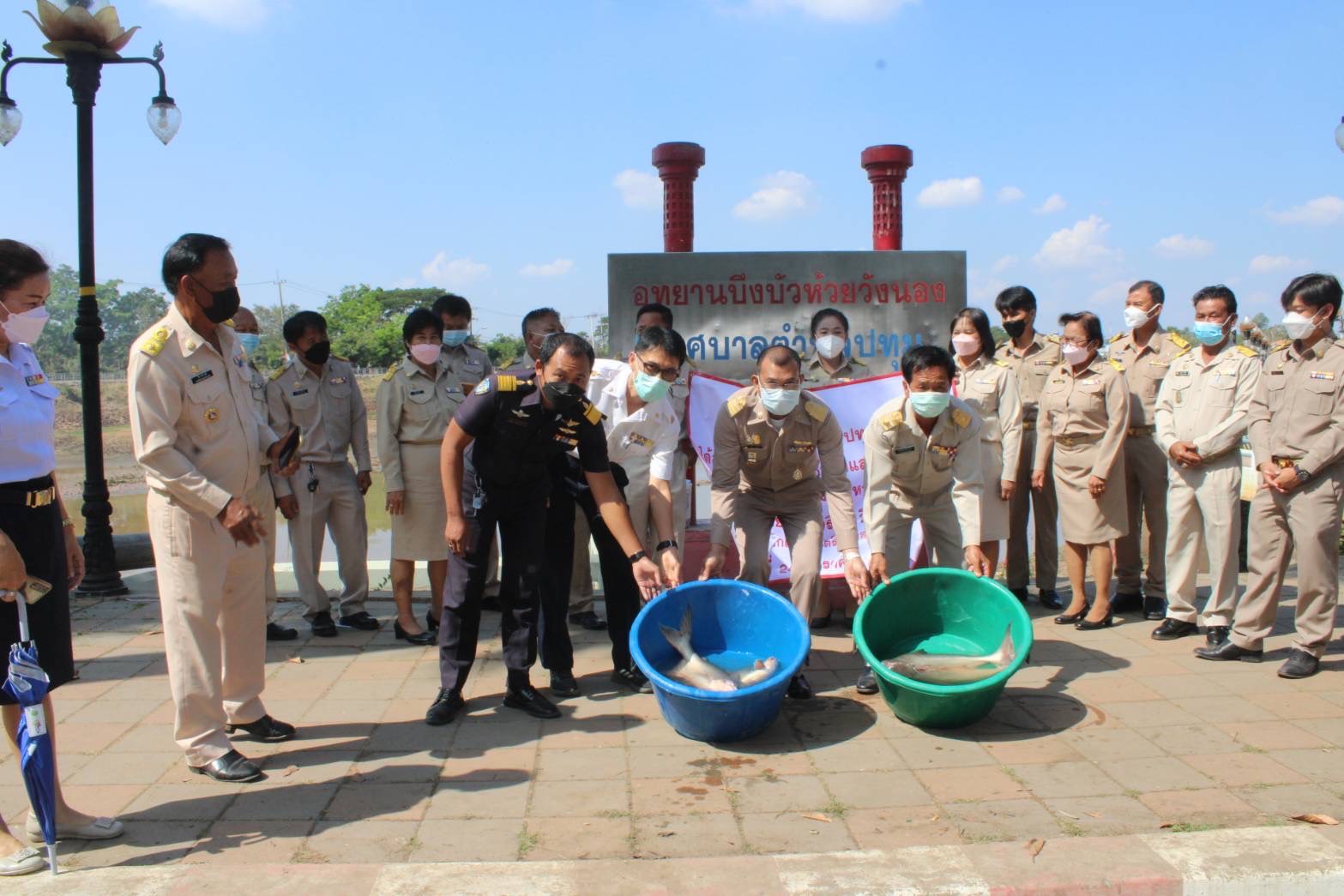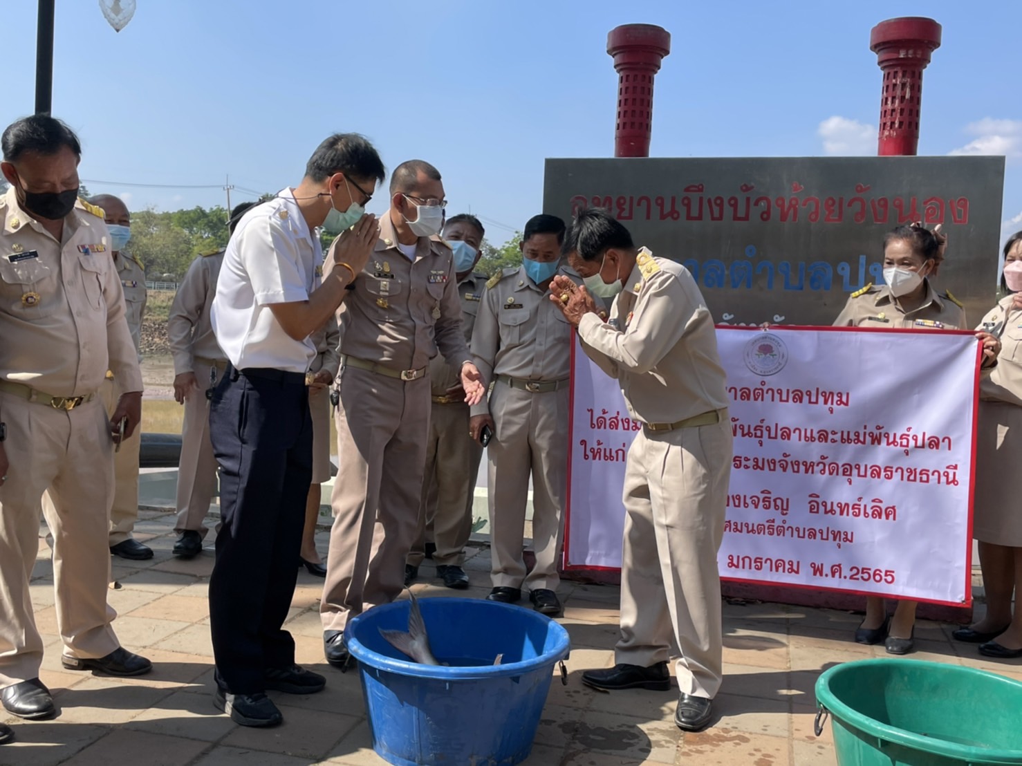 ประมงจังหวัดอุบลฯ ร่วมกับศูนย์วิจัยประมงฯ หน่วยป้องการและปราบปรามฯ (เขื่อนปากมูล) รับมอบพ่อแม่พันธุ์สัตว์น้ำ (ปลาสวาย ปลาเทโพ) จากนายกเทศมนตรีตำบลปทุม