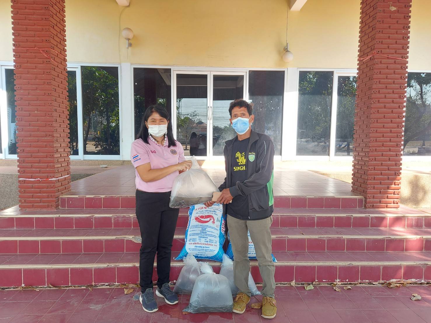 วันที่ 25 มกราคม 2565 นางสาวกานต์รวี รักผล ประมงอำเภอสิรินธร มอบปัจจัยการผลิตให้แก่เกษตรกรทึ่เข้าร่วม"โครงการศูนย์เรียนรู้การเพิ่มประสิทธิภาพการผลิตสินค้าเกษตร (ศพก. เครือข่ายด้านการประมงปี 2564) รายนางนาลอน ปราสาทศรี ณ บ้านเลขที่ 96 หมู่ 4 ตำบลฝางคำ อำเภอสิรินธร จังหวัดอุบลราชธานี