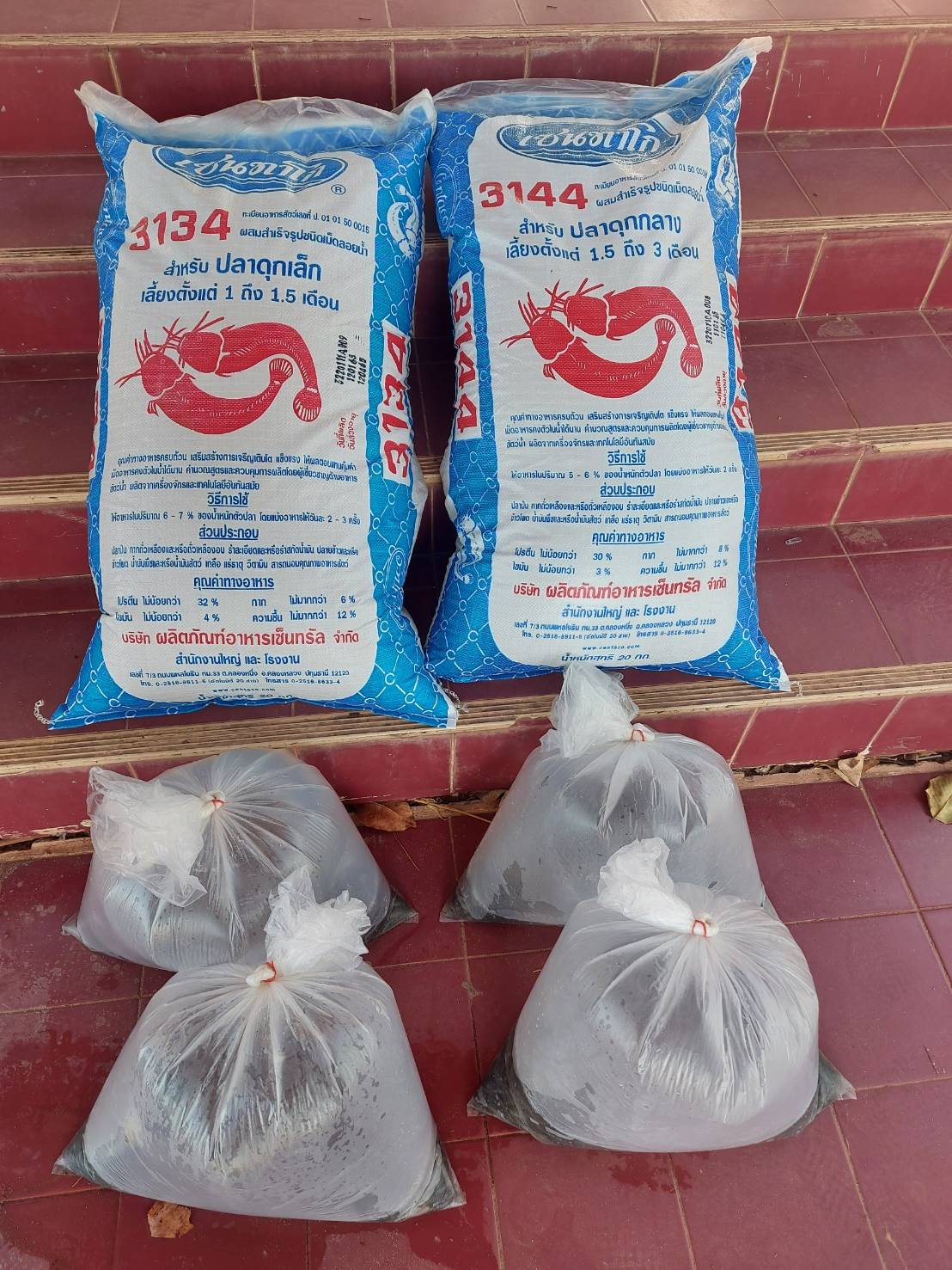 2. อาหารปลาดุกเม็ดเล็กและเม็ดกลาง อย่างละ 1 กระสอบ รวม 2 กระสอบ