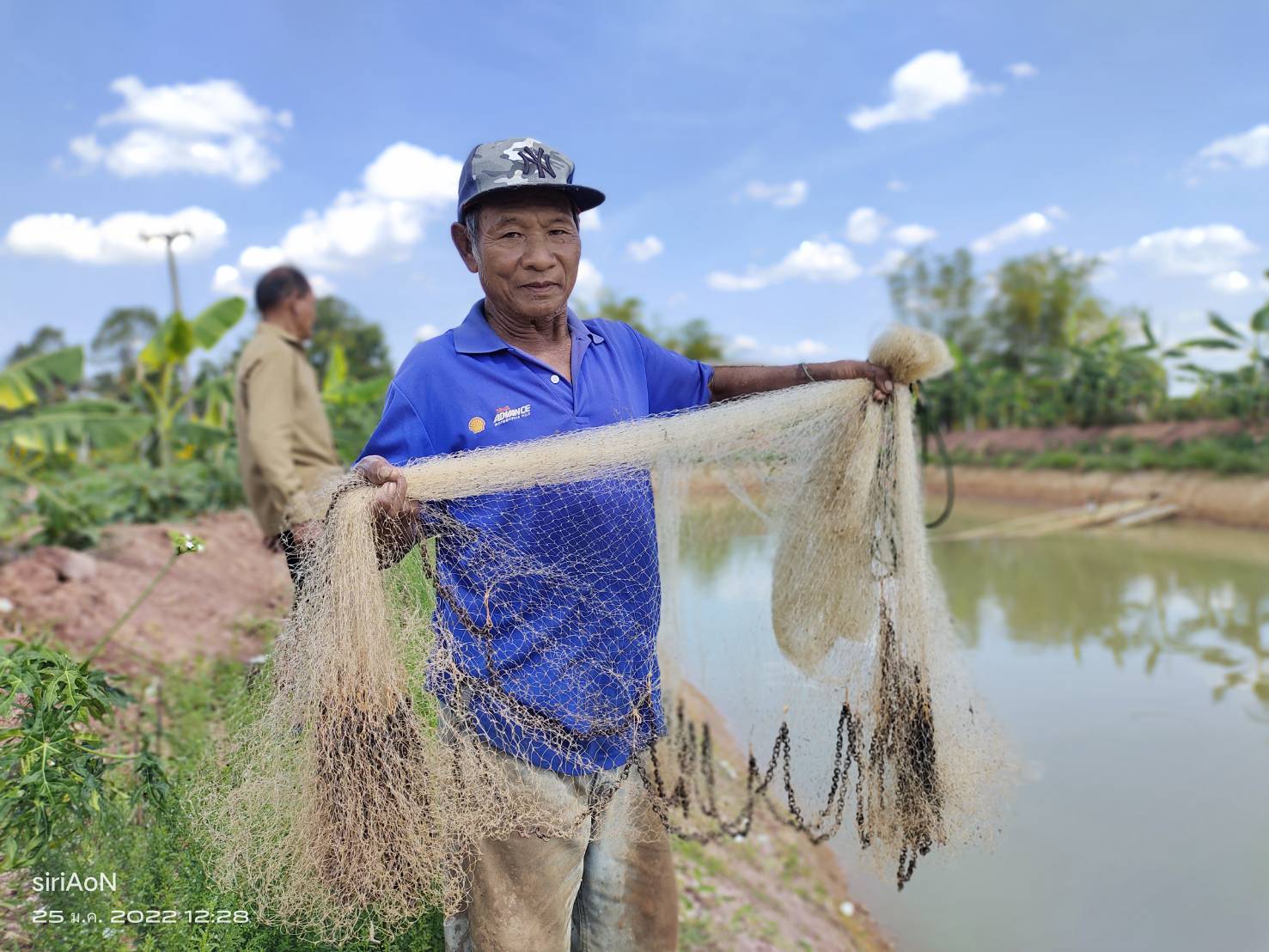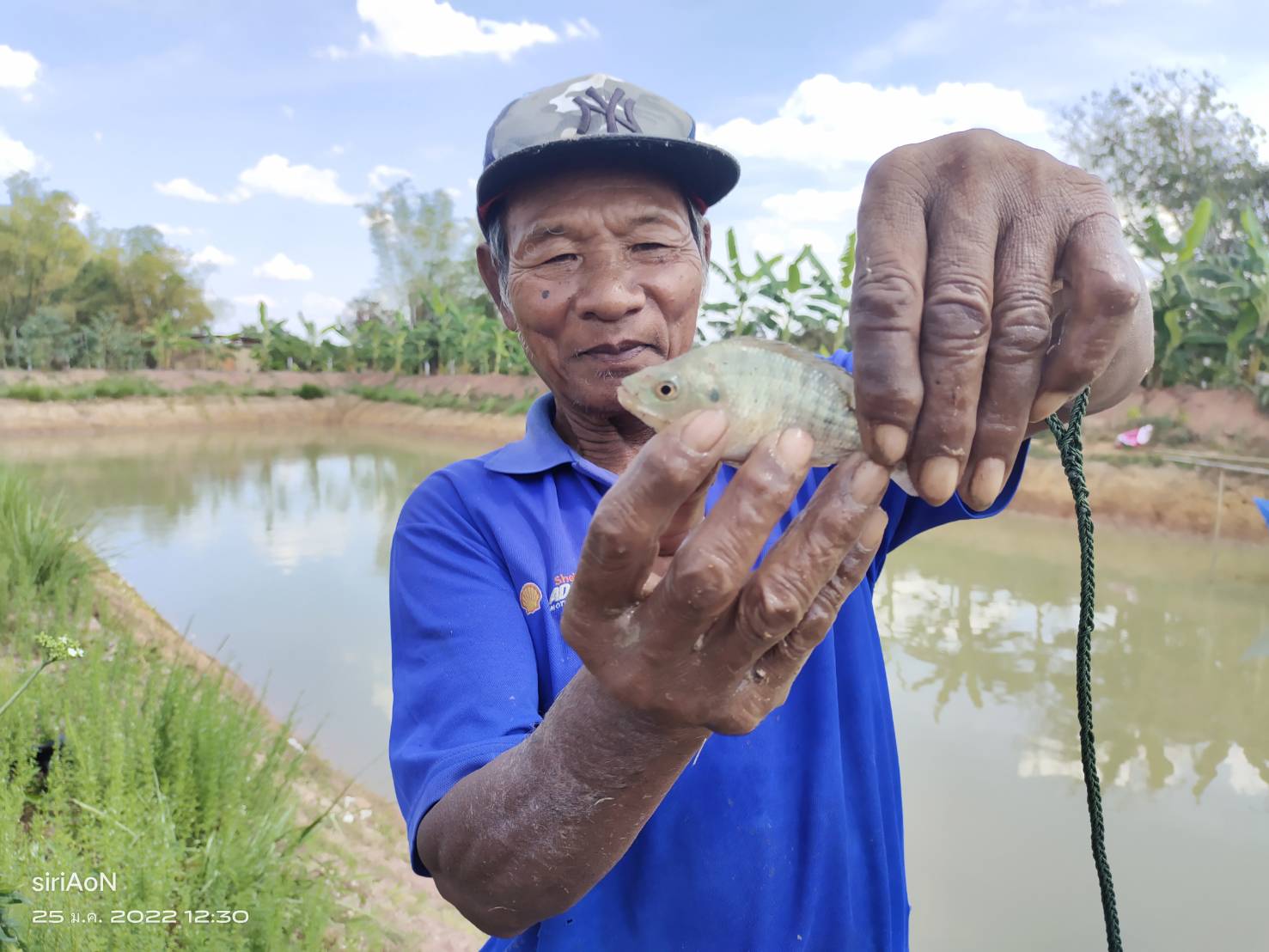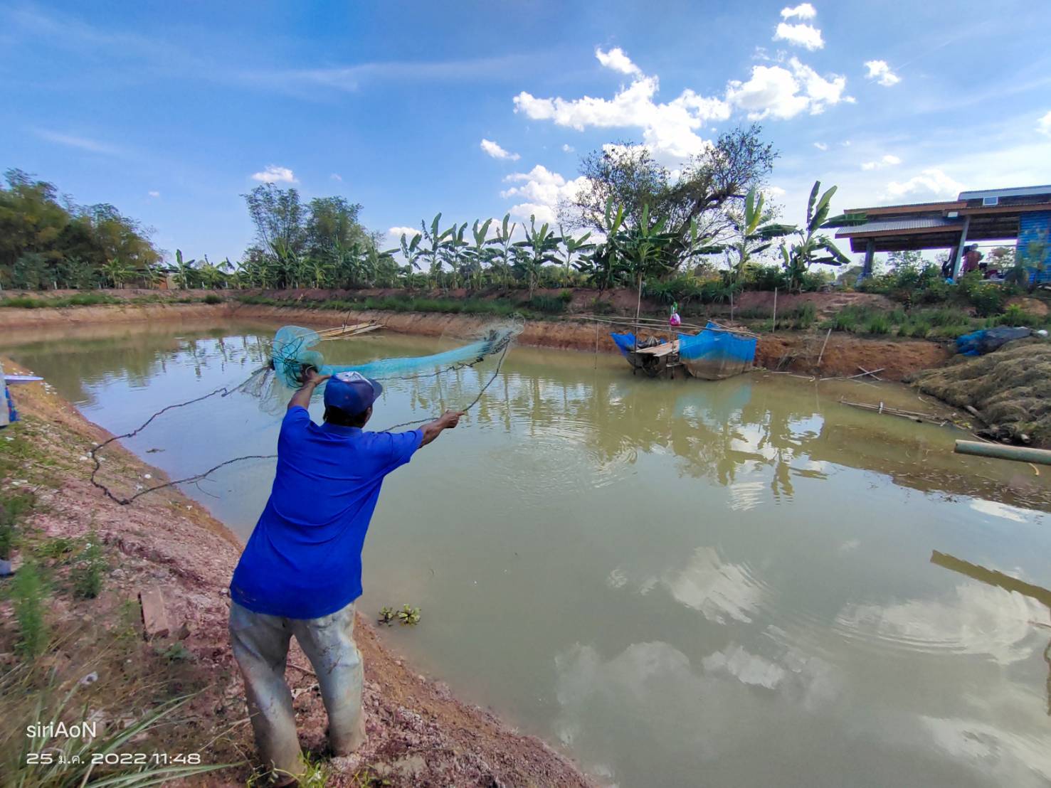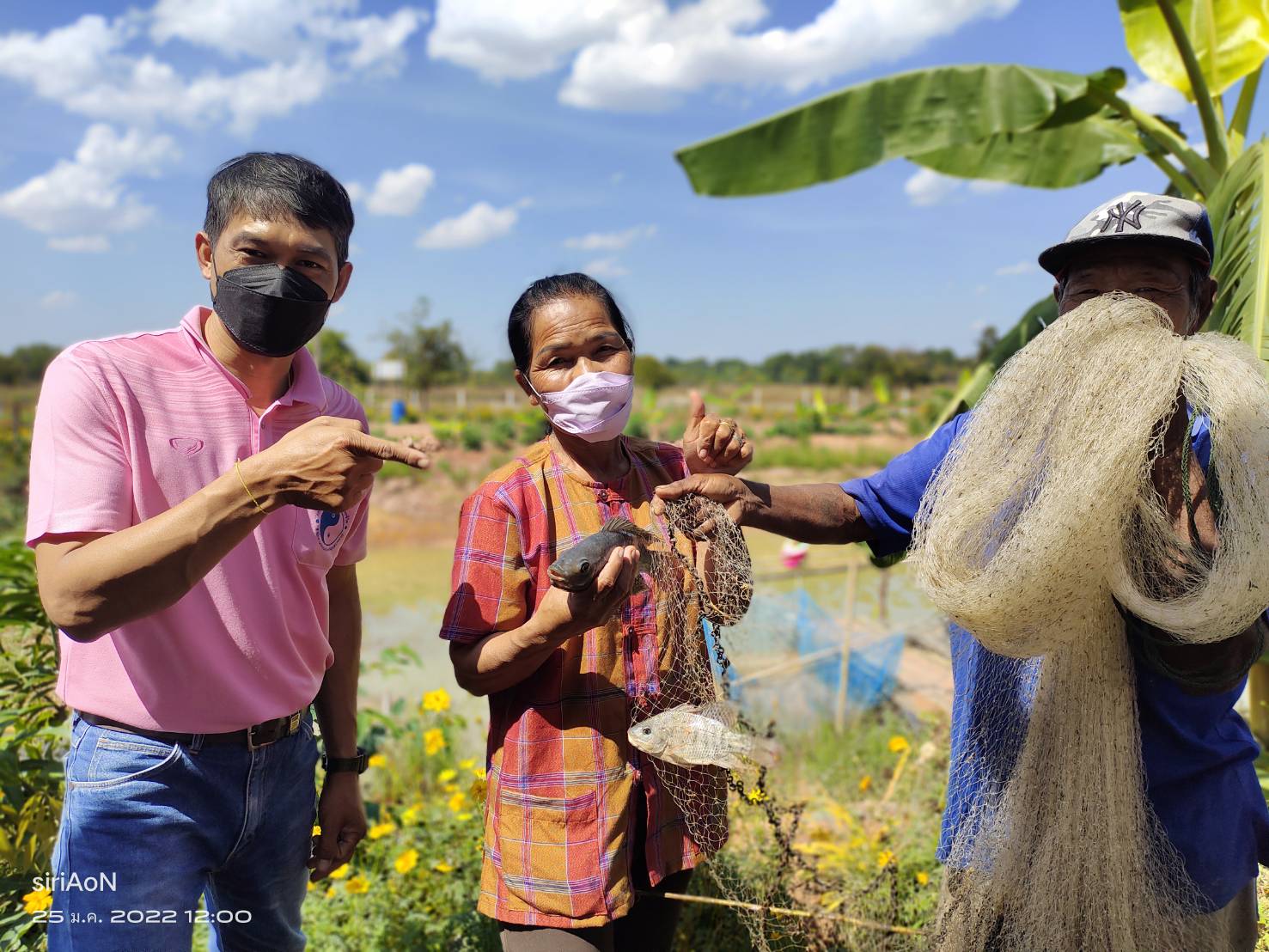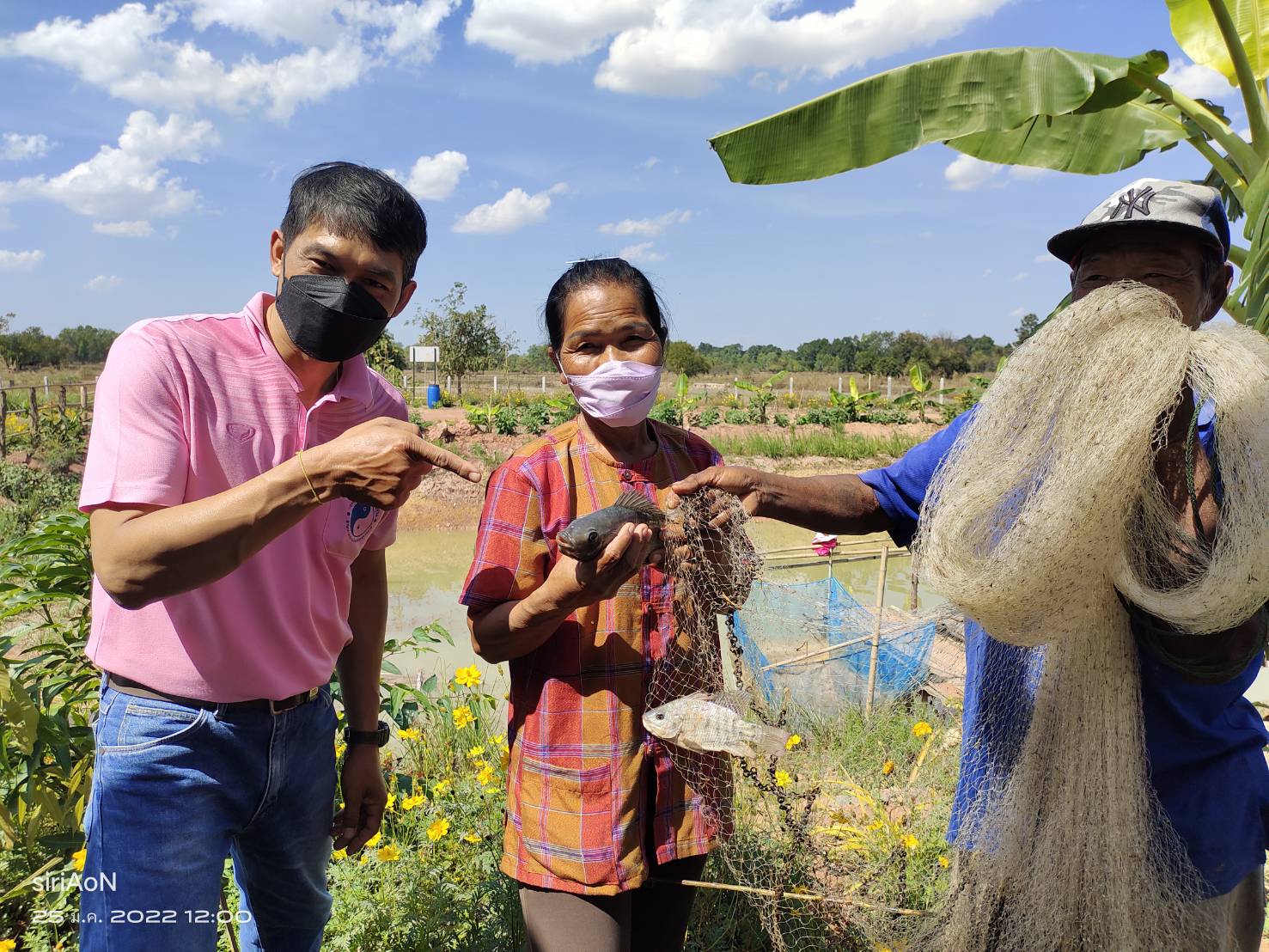 เจ้าหน้าที่กลุ่มส่งเสริมฯ ลงพื้นที่ประเมินผลผลิตปลานิล ในโครงการ 1 ตำบล  1 กลุ่มเกษตรทฤษฎีใหม่
