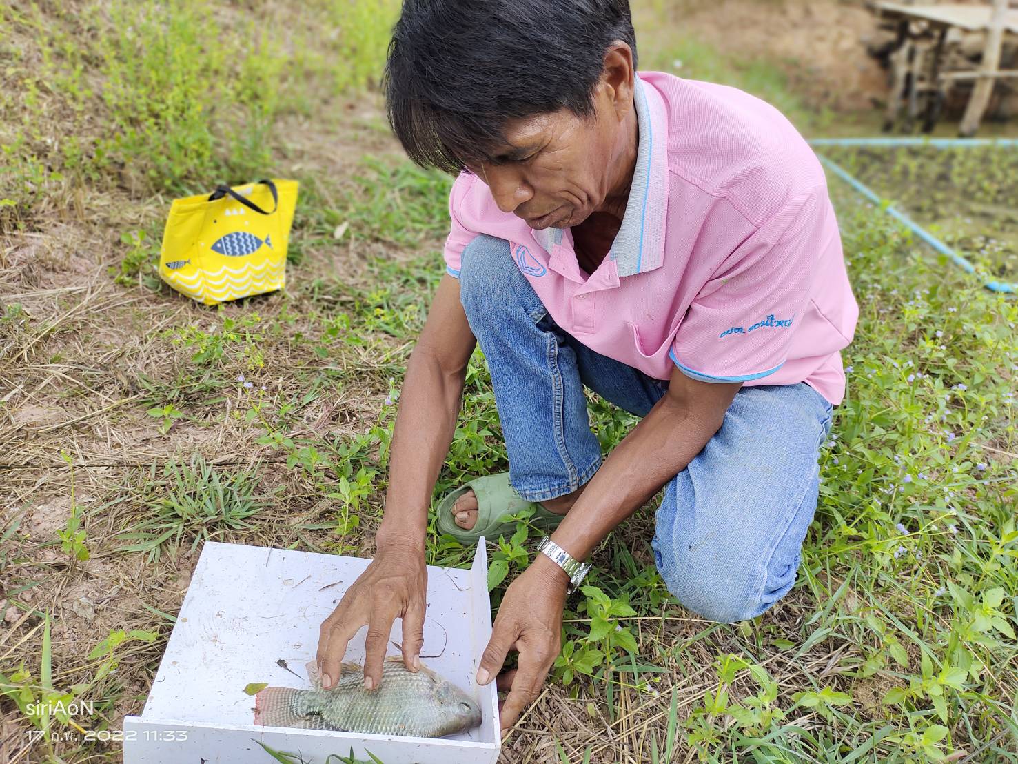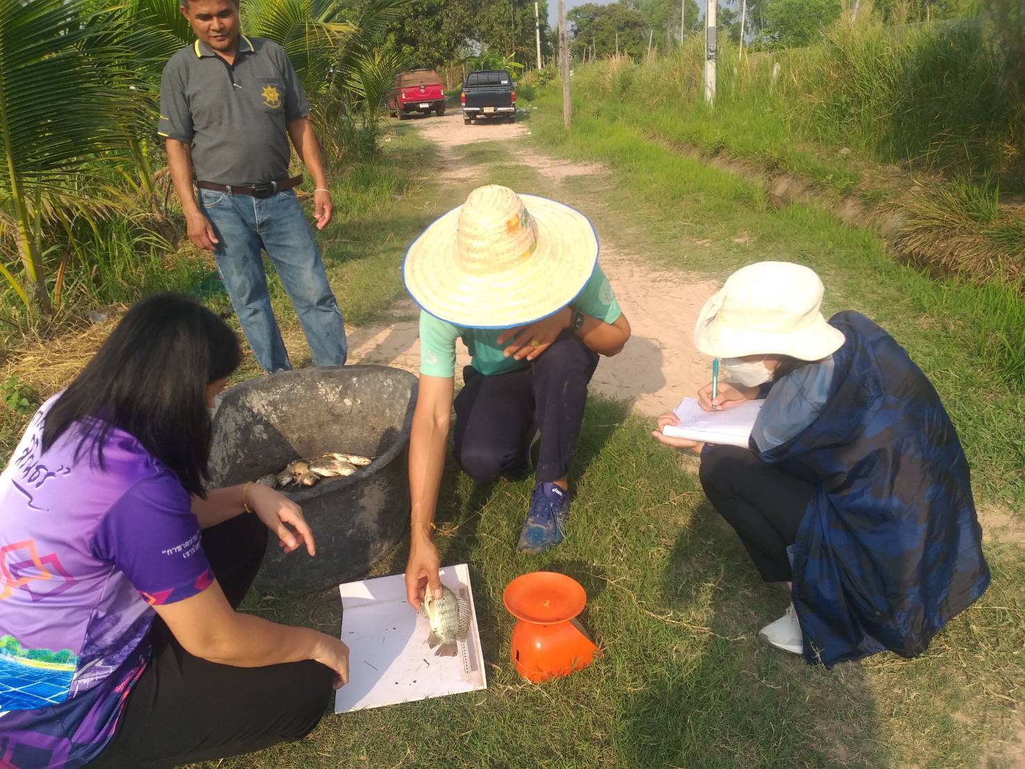 เวลา 09.00 น. เข้าส่งเสริมองค์ความรู้แก่เกษตรกร จำนวน 5 ราย ณ ศาลากลางบ้านหมูที่ 3 ตำบลดอนใหญ่ อำเภอศรีเมืองใหม่ จังหวัดอุบลราชธานี จากการเข้าเสริมสร้างองค์ความรู้ พบว่า เกษตรกรมีความรู้จากการทำแบบทดสอบ ร้อยละ 85 และการติดตามผลผลิตที่สนับสนุน เมื่อวันที่ 18 มิถุนายน 2565  ลูกพันธุ์ปลานิล ปลาตะเพียนขาว และไน รวมรายละ 3,000 ตัว  ลูกพันธุ์สัตว์น้ำมีอัตราการเจริญเติบโตดี จากการสุ่มชั่งวัดพบว่า ปลานิล มีการเจริญเติบโตดี น้ำหนักเฉลี่ย เท่ากับ 342 กรัม ความยาวเฉลี่ยเท่ากับ 23.75 ซม. ส่วนปลาตะเพียน น้ำหนักเฉลี่ย เท่ากับ 60 กรัม ความยาวเฉลี่ยเท่ากับ 17.1 ซม.เกษตรกรทุกรายมีการเตรียมบ่อสร้างอาหารธรรมชาติด้วยวิธีการใช้ฟางข้าวร่วมกับมูลสัตว์ ตลอดจนการเพาะแหนแดง ผักตบชวา ผักบุ้ง รำข้าวเพื่อเป็นอาหารเสริมโปรตีนสำหรับปลาที่เลี้ยง และคาดว่าจะทยอยจับขึ้นมาจำหน่ายและบริโภคต่อไป