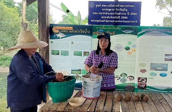 ประมงอำเภอวารินชำราบ ลงพื้นที่ตรวจเยี่ยมศูนย์ของเกษตรกรที่ได้รับการคัดเลือกให้เป็นจุดเรียนรู้เกษตรกรทฤษฎีใหม่ ตำบลละ 1 กลุ่มของอำเภอวารินชำราบ ตามโครงการเกษตรทฤษฎีใหม่
